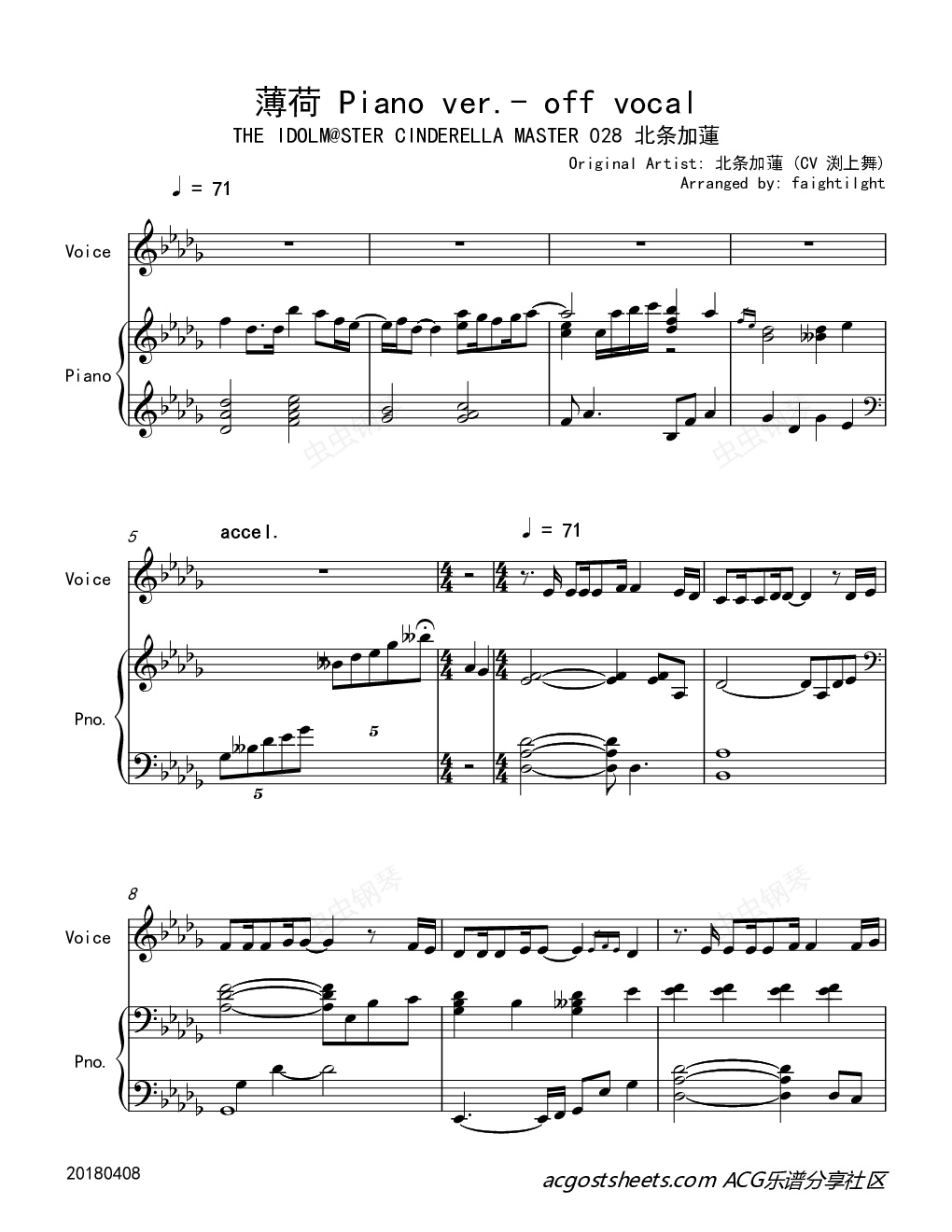 钢琴谱:【偶像大师灰姑娘女孩】薄荷 钢琴伴奏