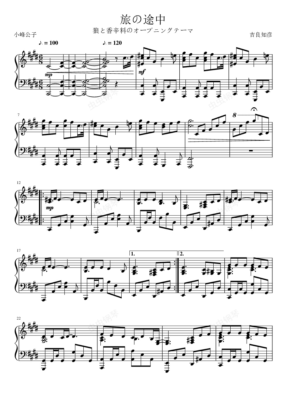 钢琴谱:狼与香辛料 OST - 旅の途中 Full Version