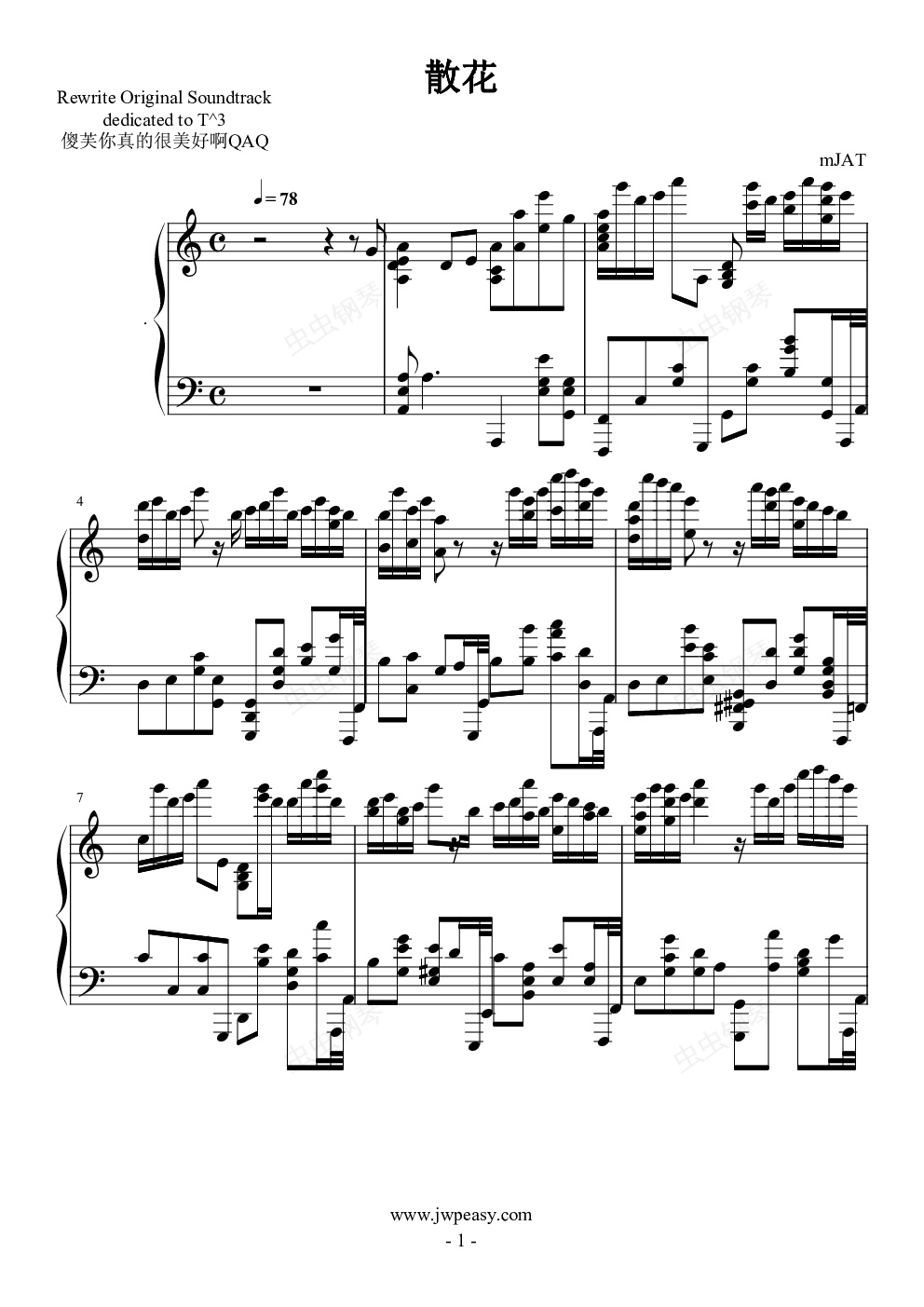 钢琴谱:散花~finale~ Rewrite (原创变奏)