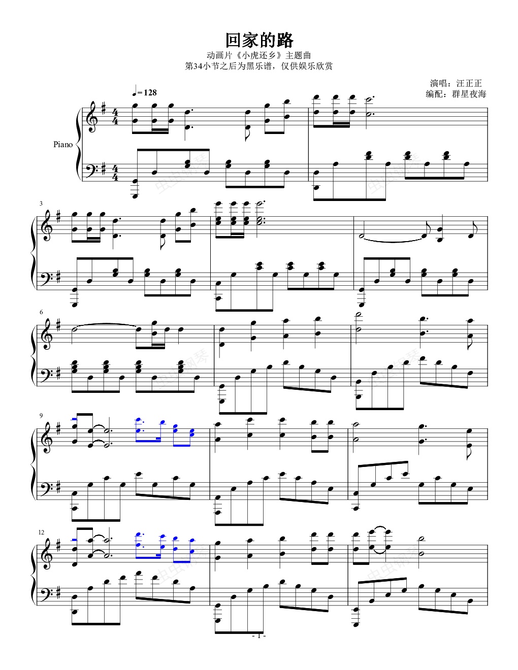 钢琴谱:回家的路 - 《小虎还乡》主题曲(1.0完美版)