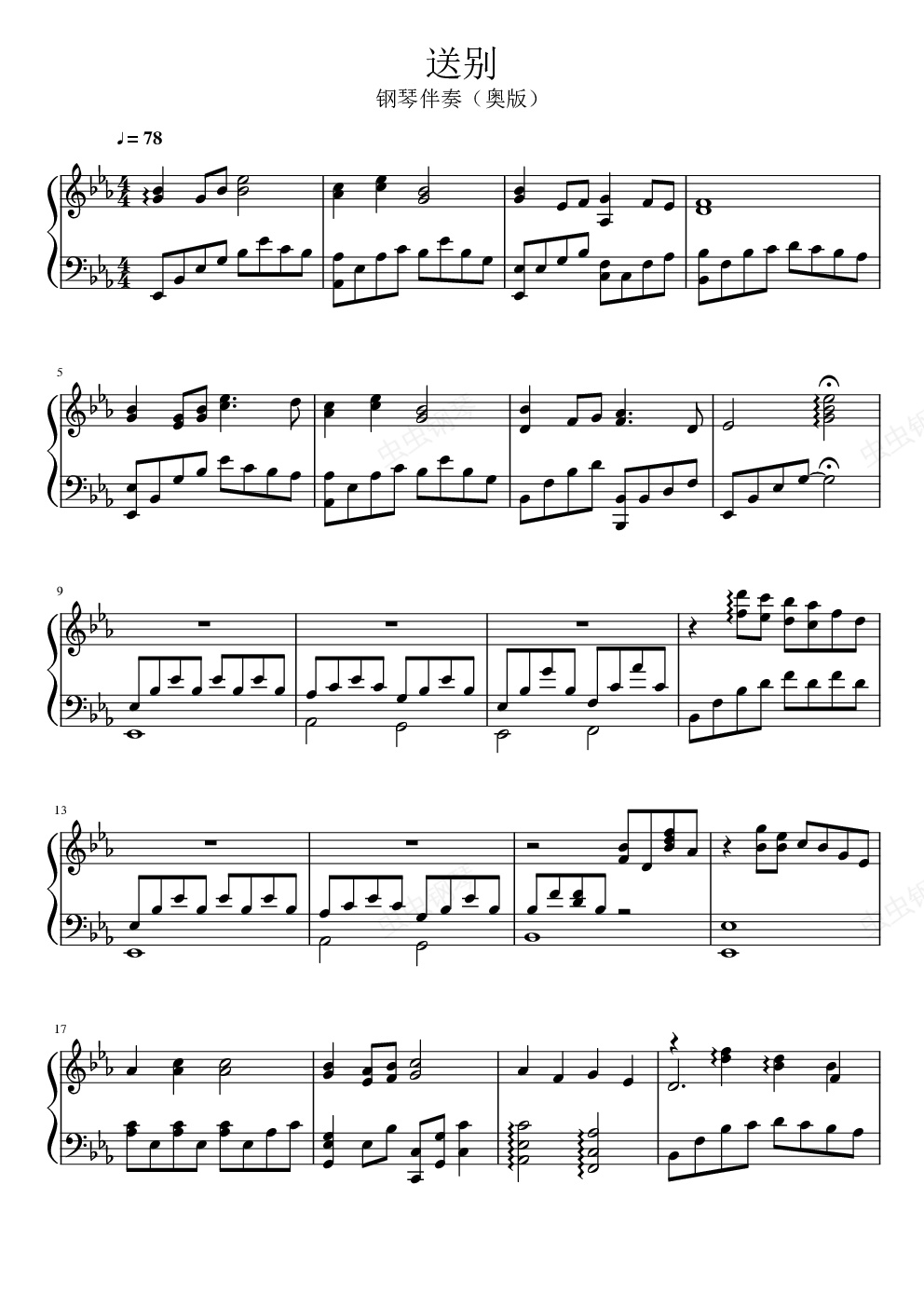 钢琴谱:送别-奥德威曲钢琴伴奏