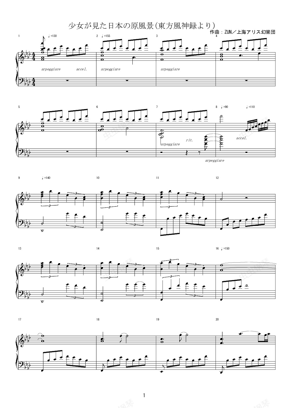钢琴谱:【东方风神录】少女曾见的日本原风景