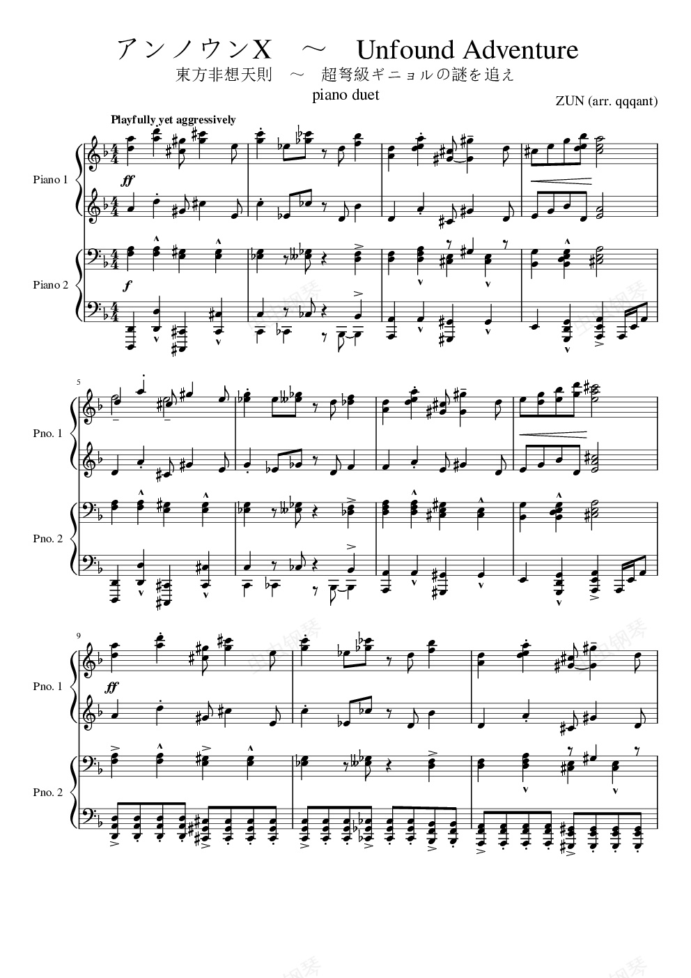 钢琴谱:【东方非想天则】未知物X ~ Unfound Adventure