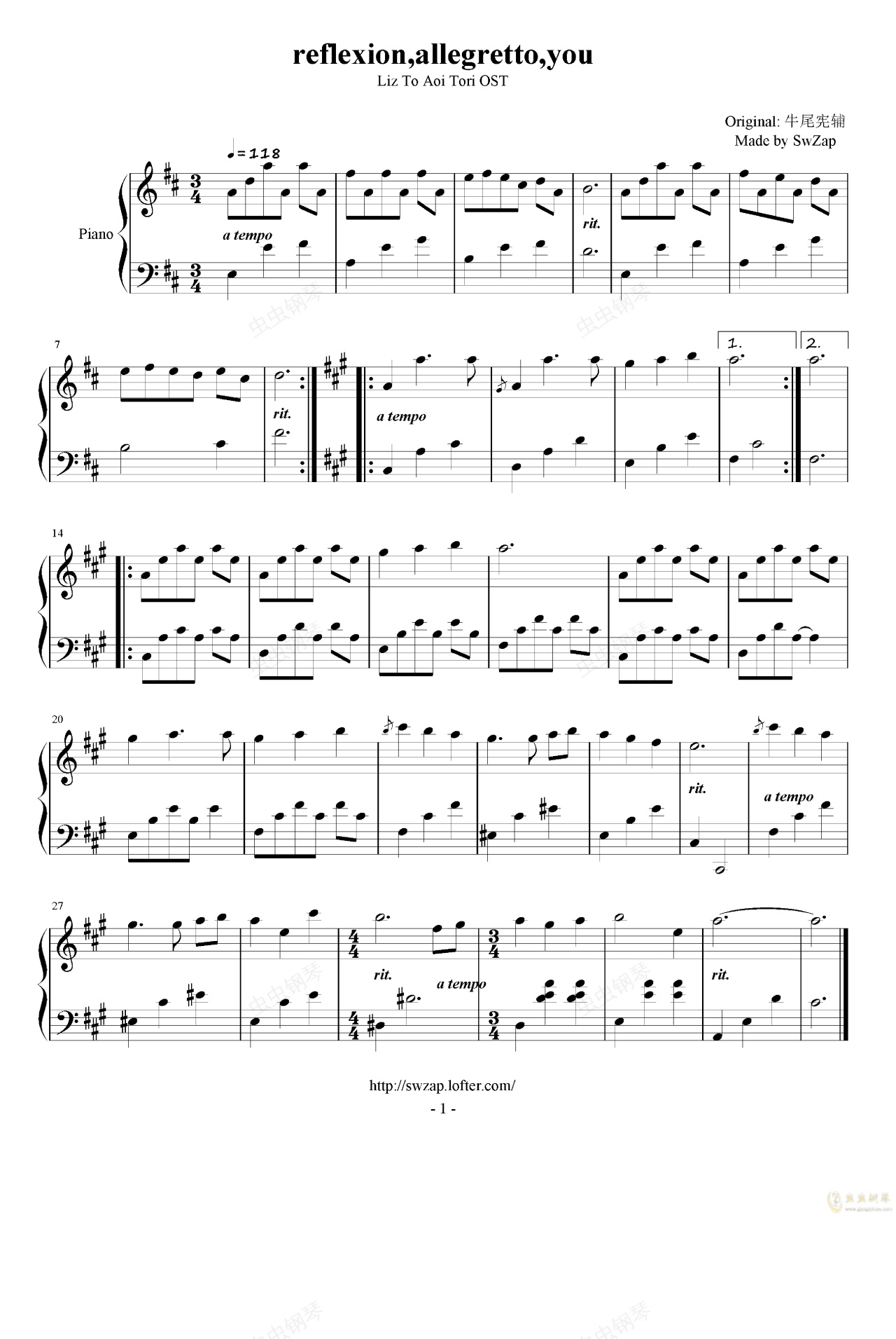 钢琴谱:reflexion,allegretto,you(《莉兹与青鸟》OST)