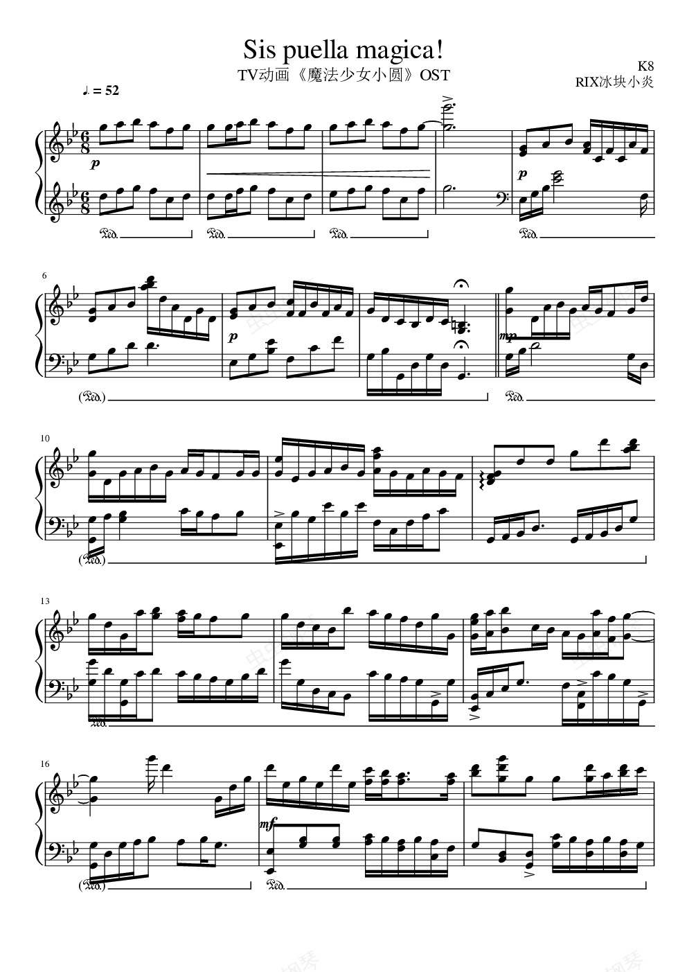 钢琴谱:【魔法少女小圆】Sis puella magica!(代发)