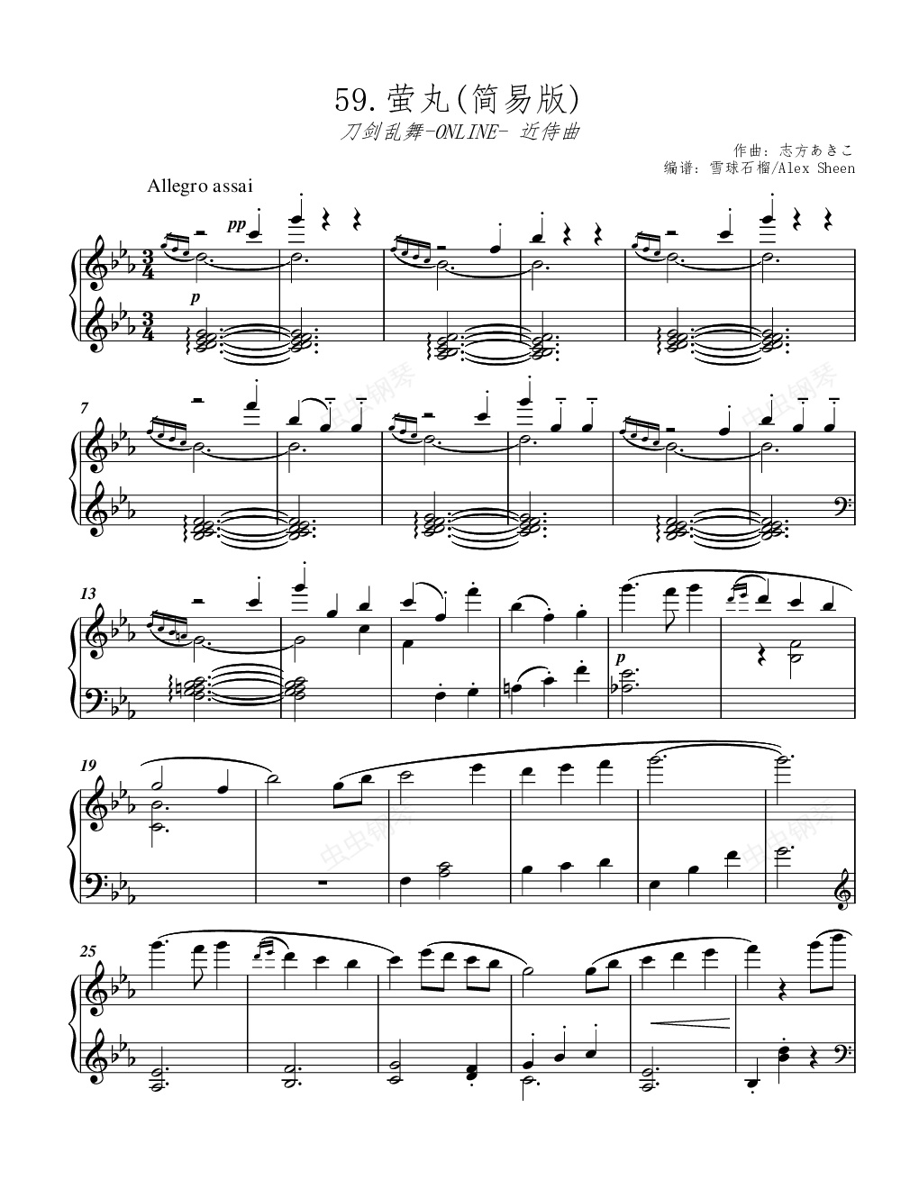 钢琴谱:萤丸 近侍曲 【刀剑乱舞】(简易版)
