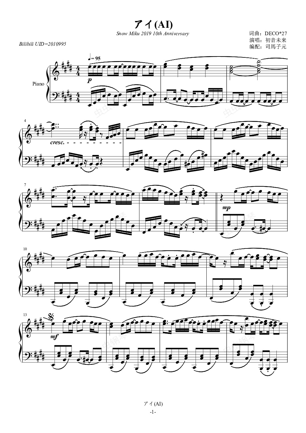 钢琴谱:アイ