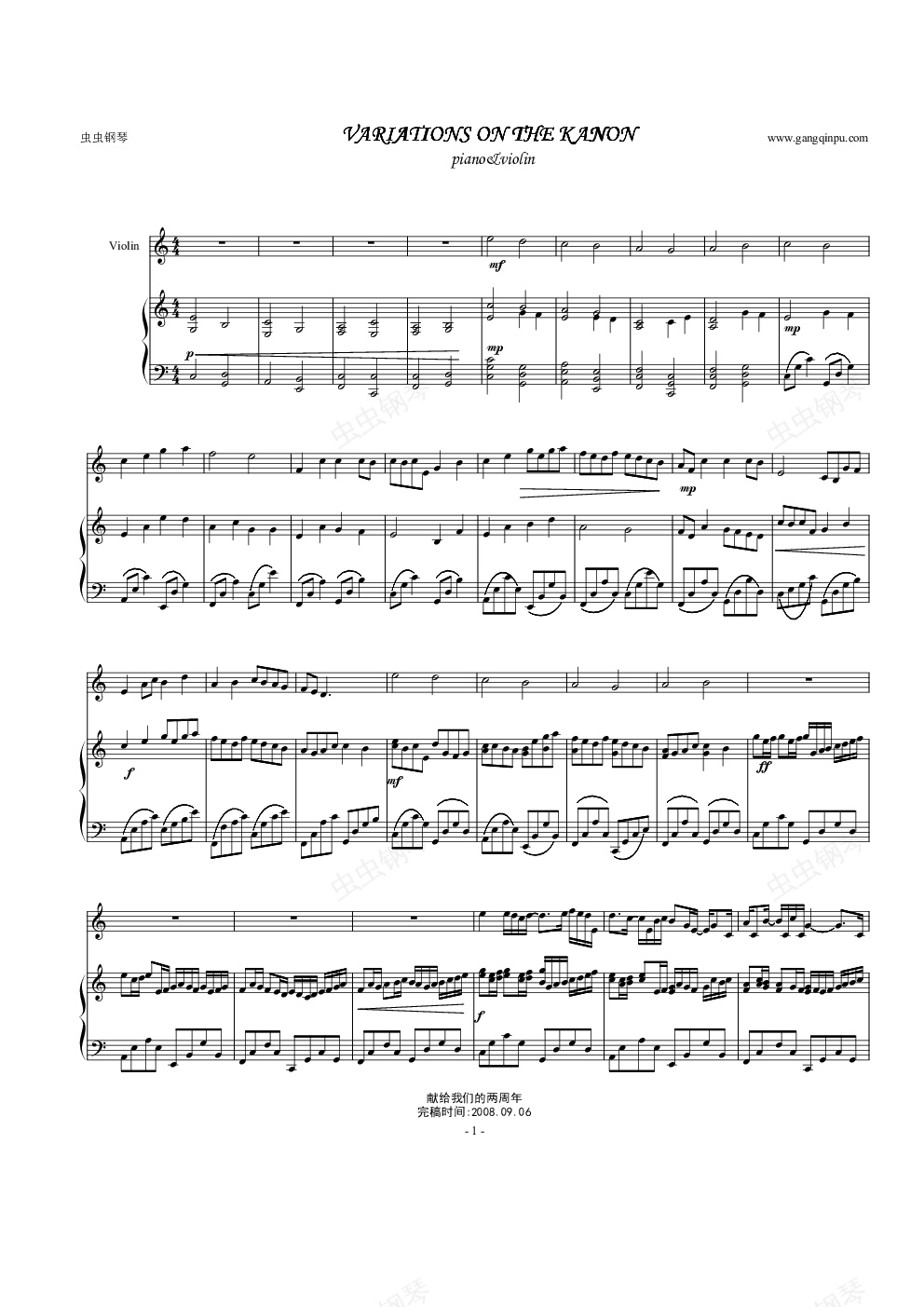 钢琴谱:卡农-小提琴&钢琴——camellia修改版