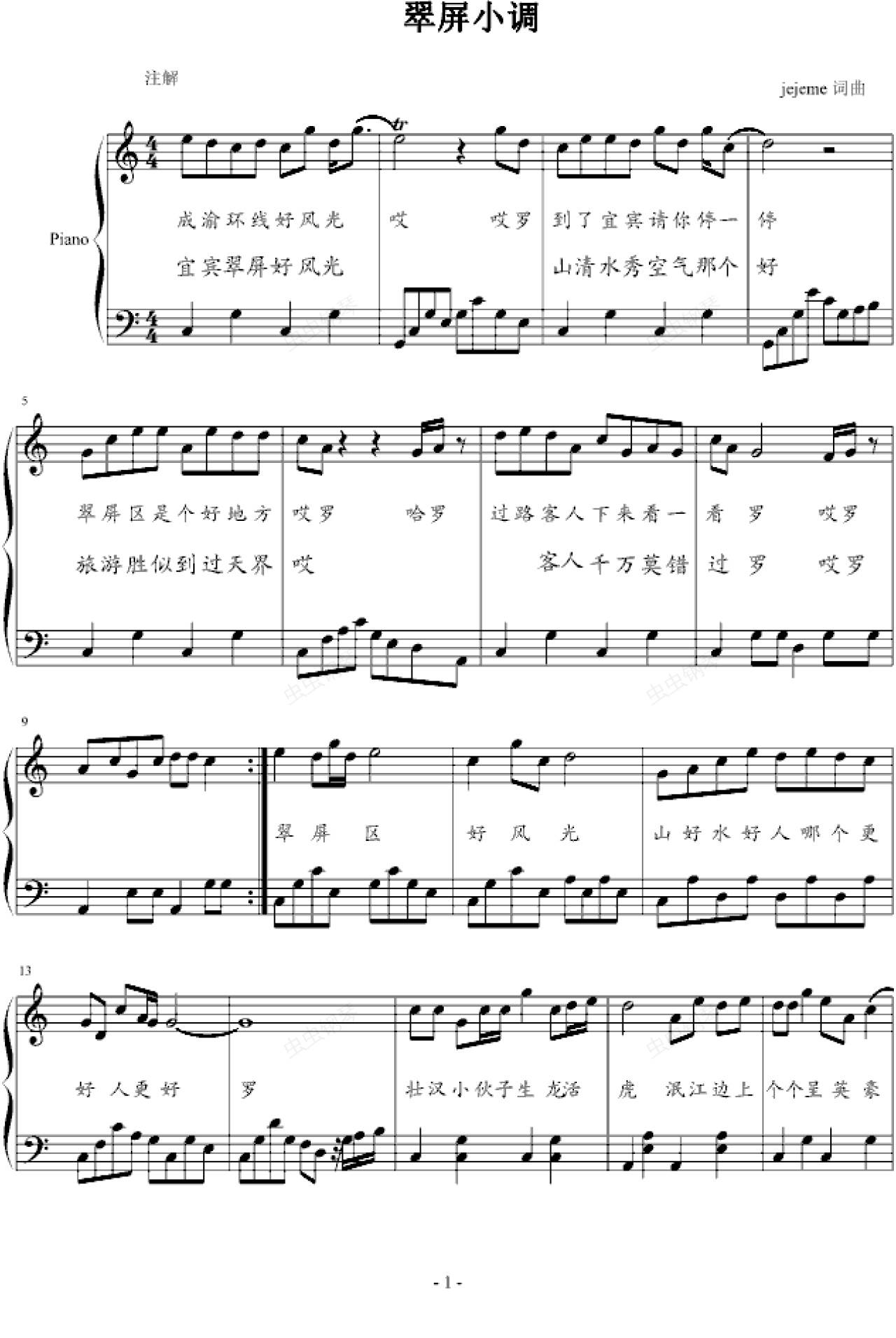 钢琴谱:江南小唱