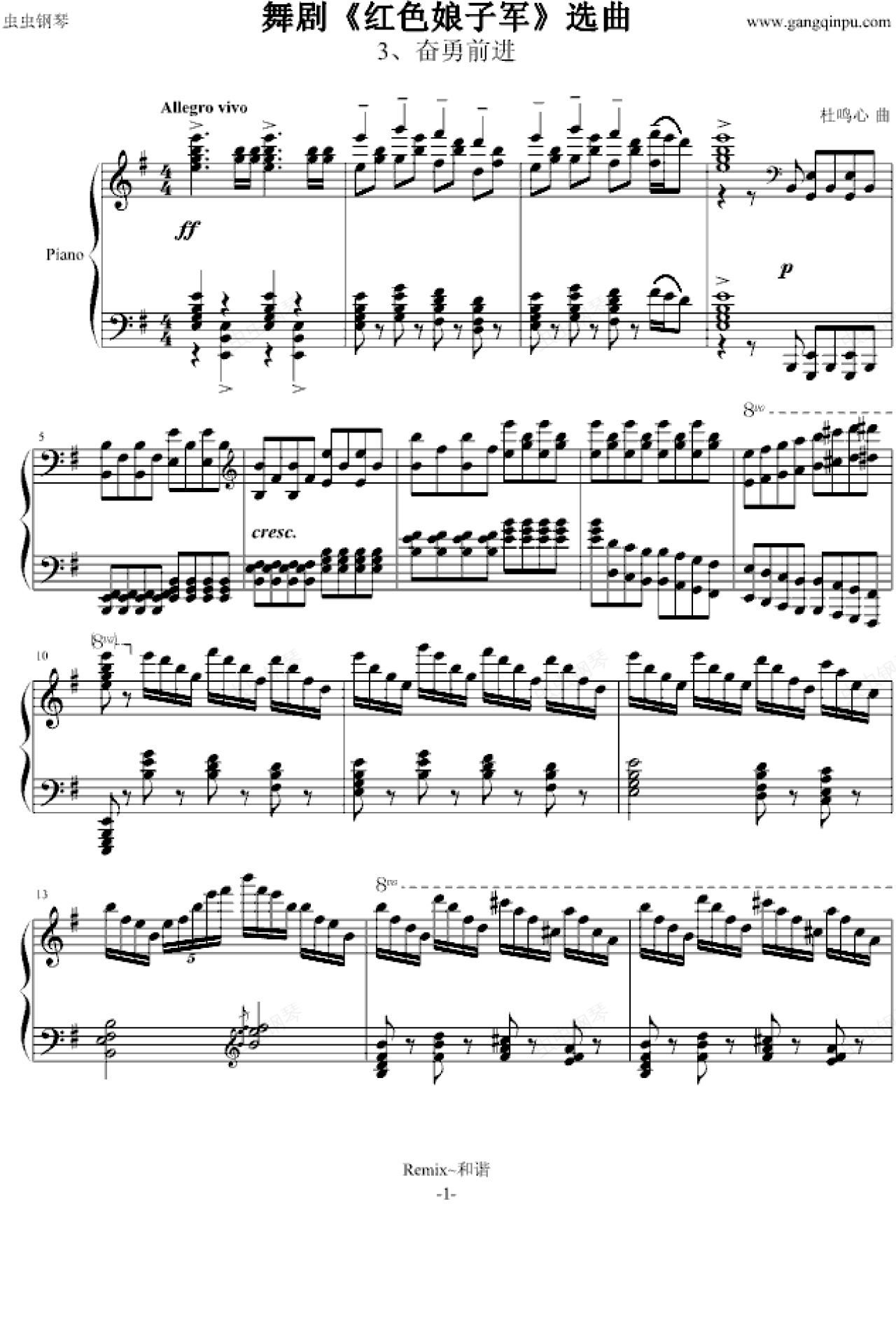 钢琴谱:舞剧《红色娘子军》之“奋勇前进”