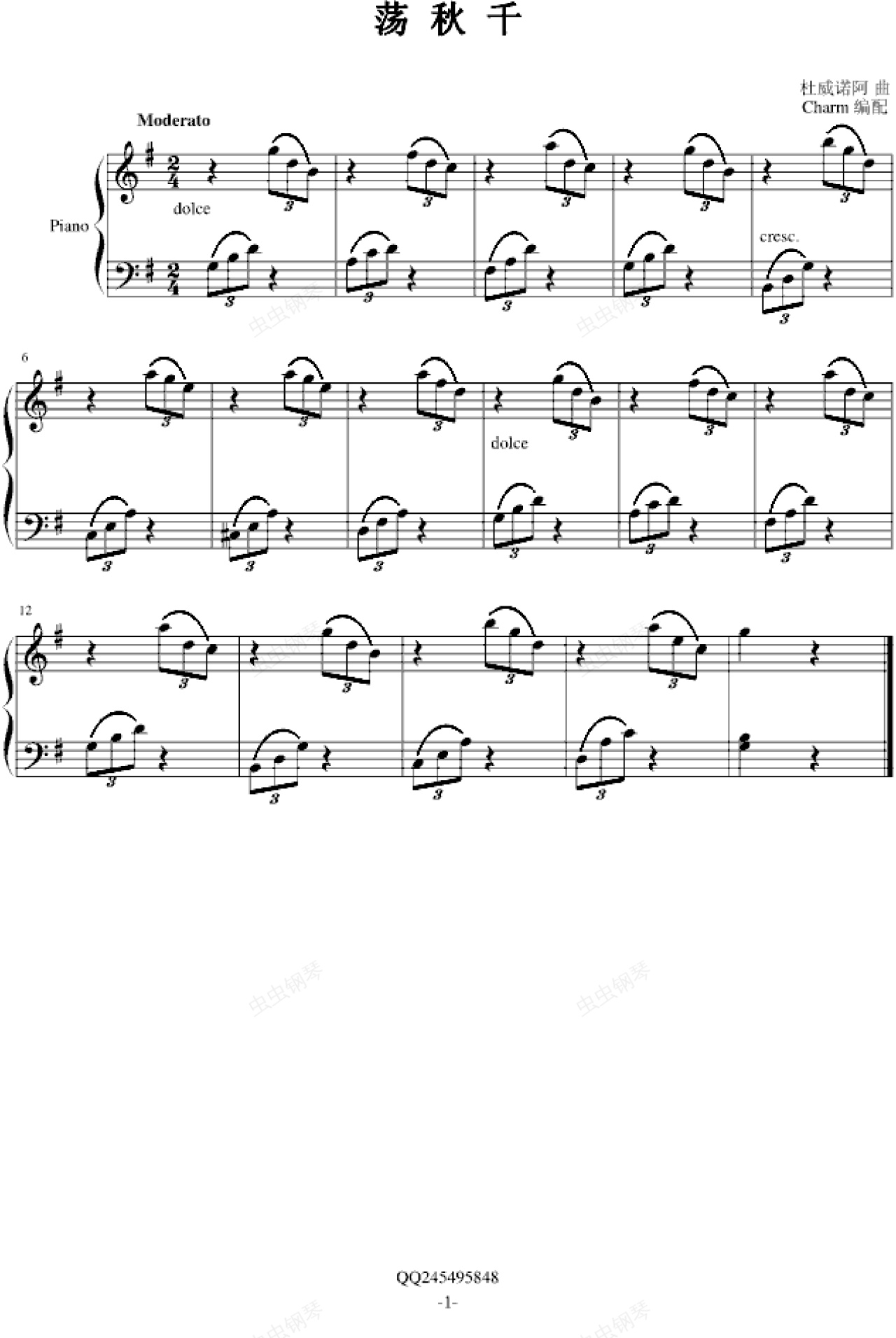 钢琴谱:荡秋千