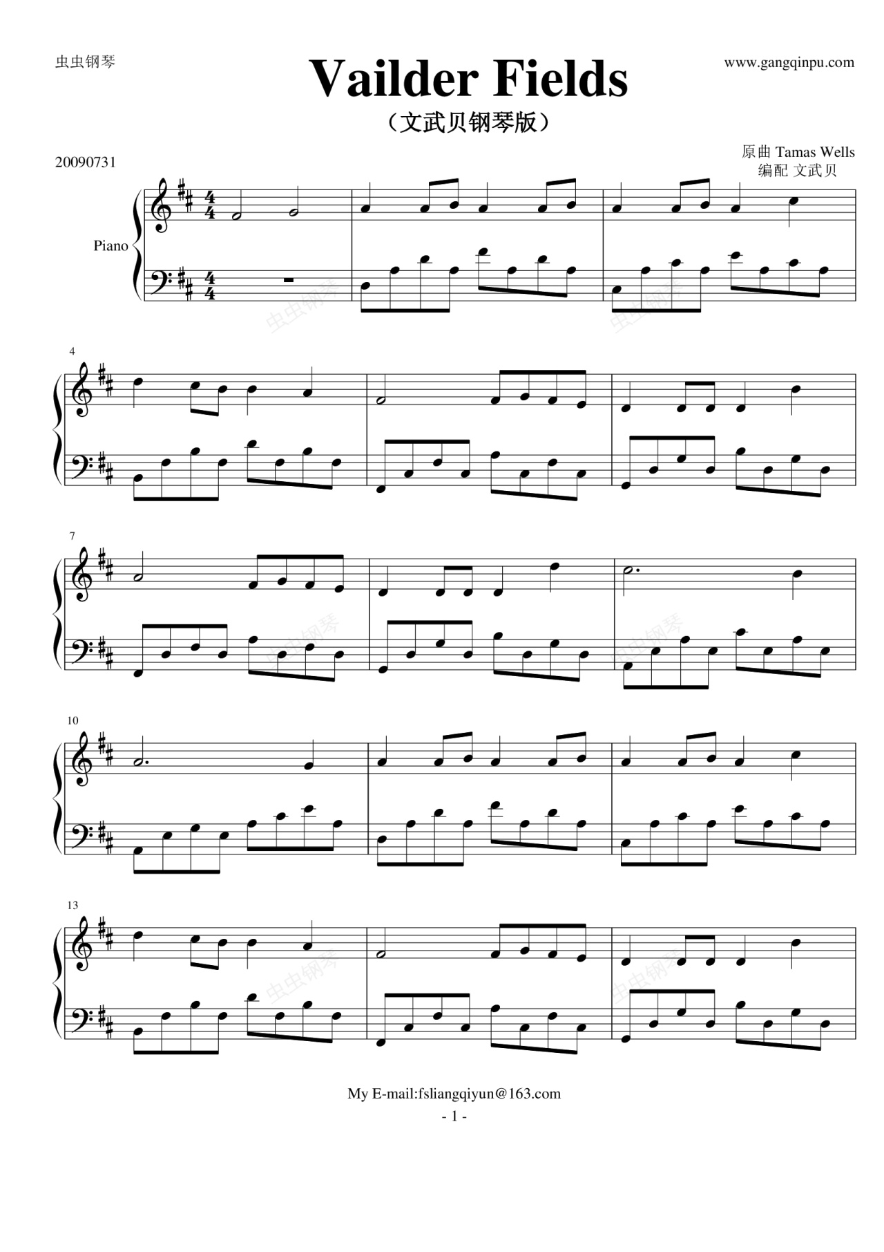 钢琴谱:Valder Fields(文武贝钢琴版)