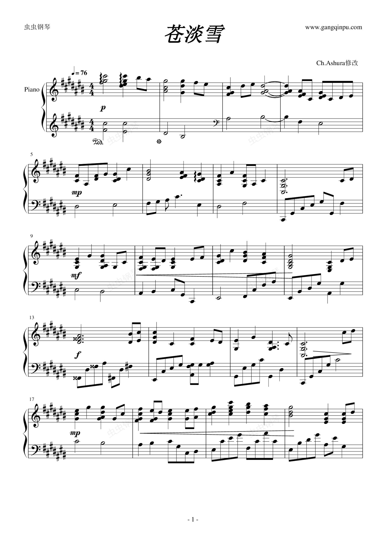 钢琴谱:苍淡雪