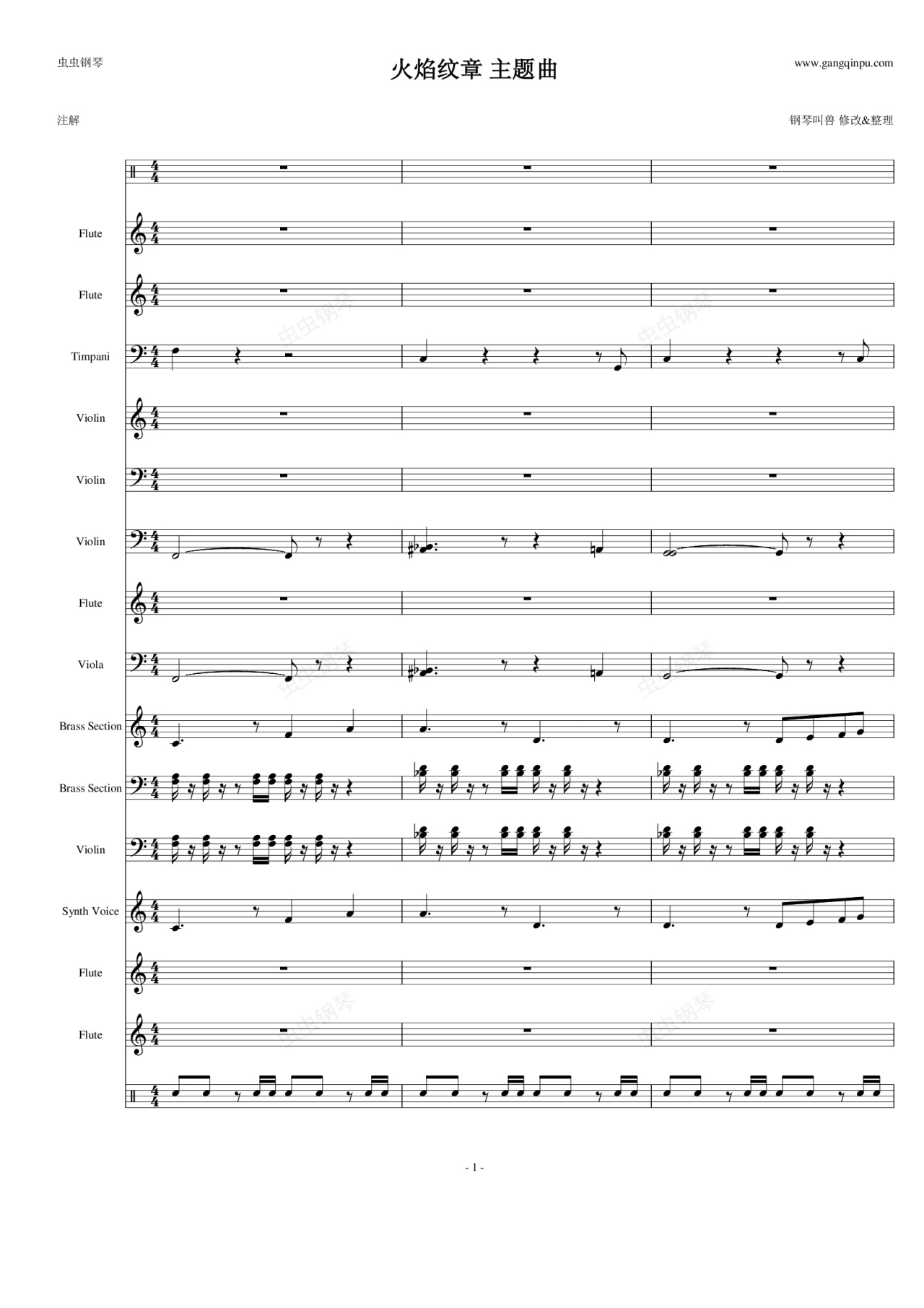 钢琴谱:火焰纹章(游戏) 主题曲