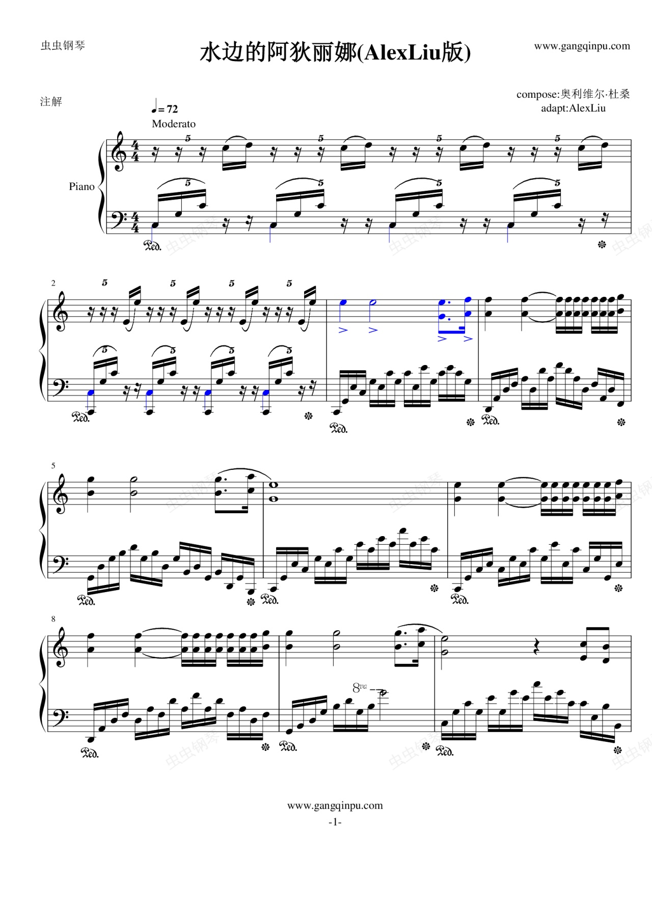 钢琴谱:改编的阿狄丽娜