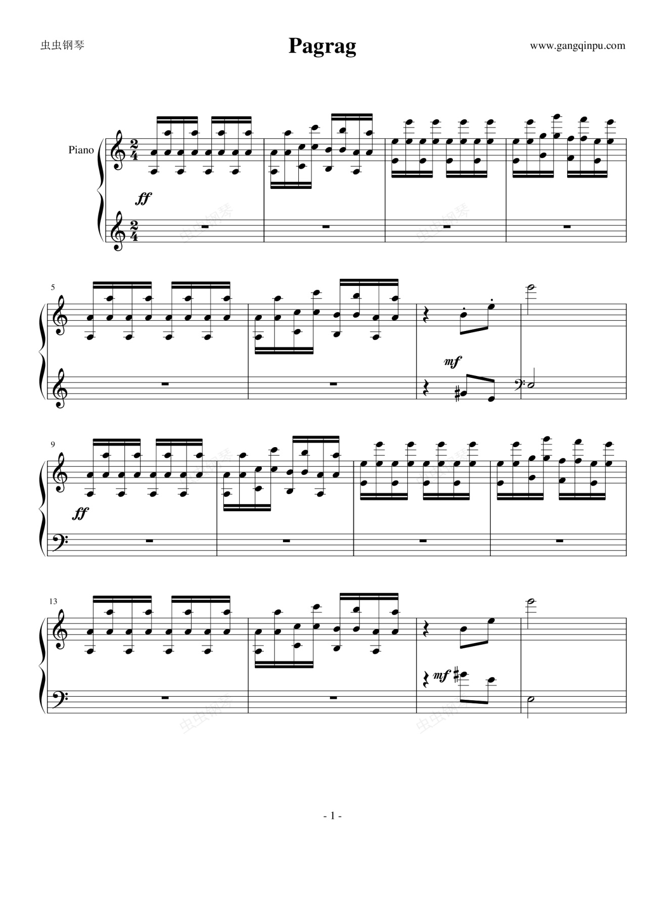 钢琴谱:Pagrag