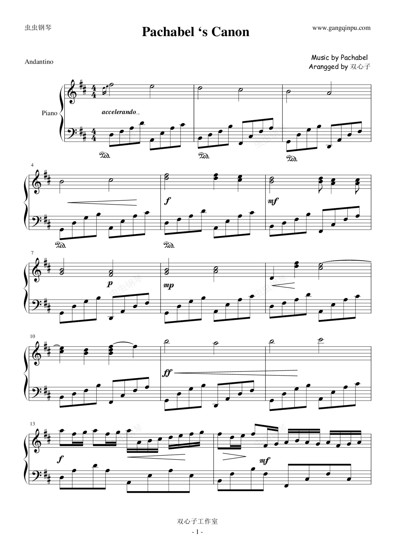 钢琴谱:Pachabels Canon