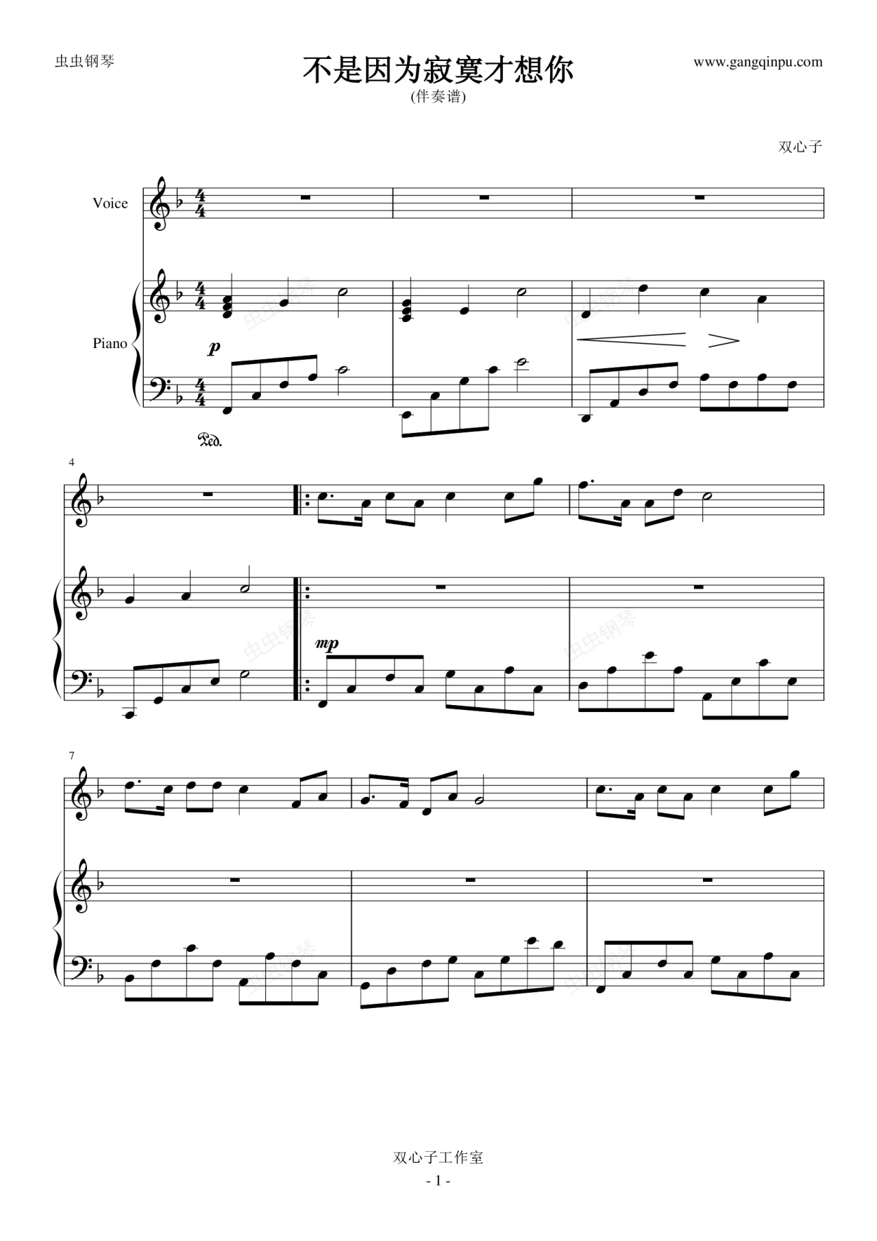钢琴谱:T.R.Y不是因为寂寞才想你(伴奏谱)