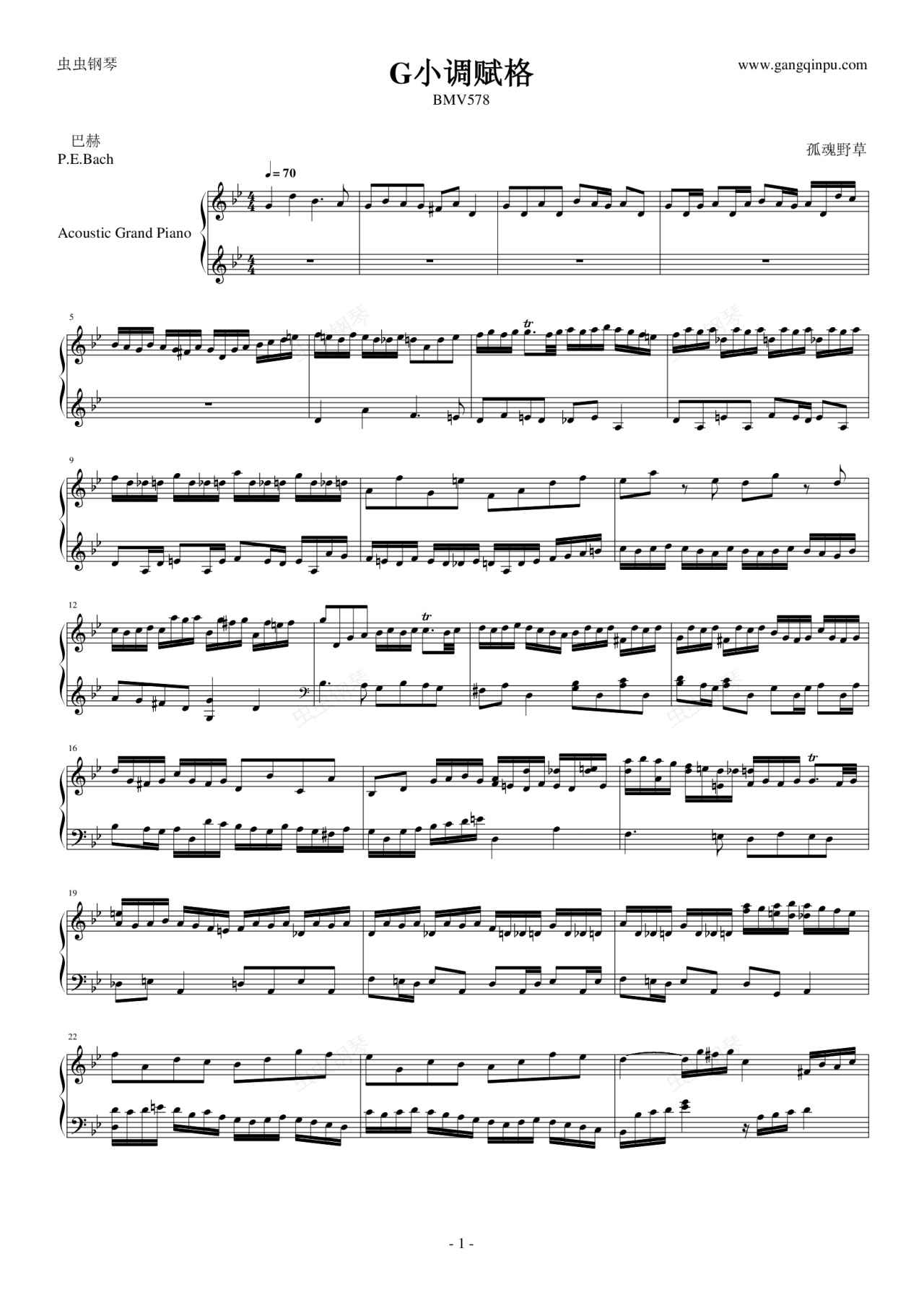 钢琴谱:G小调赋格BWV578 - 巴赫