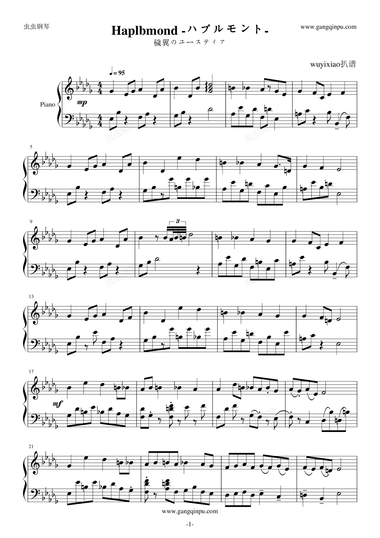 钢琴谱:Haplbmond -ハプルモント-(穢翼のユースティア)