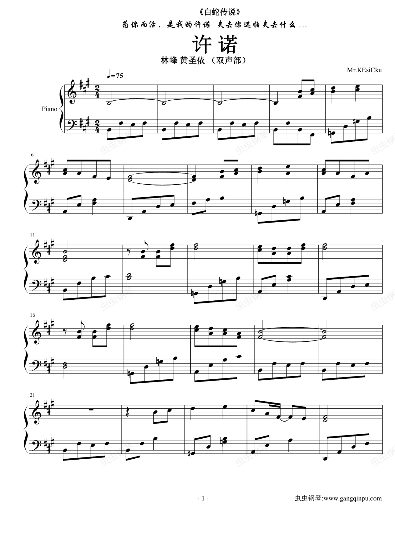 钢琴谱:许诺