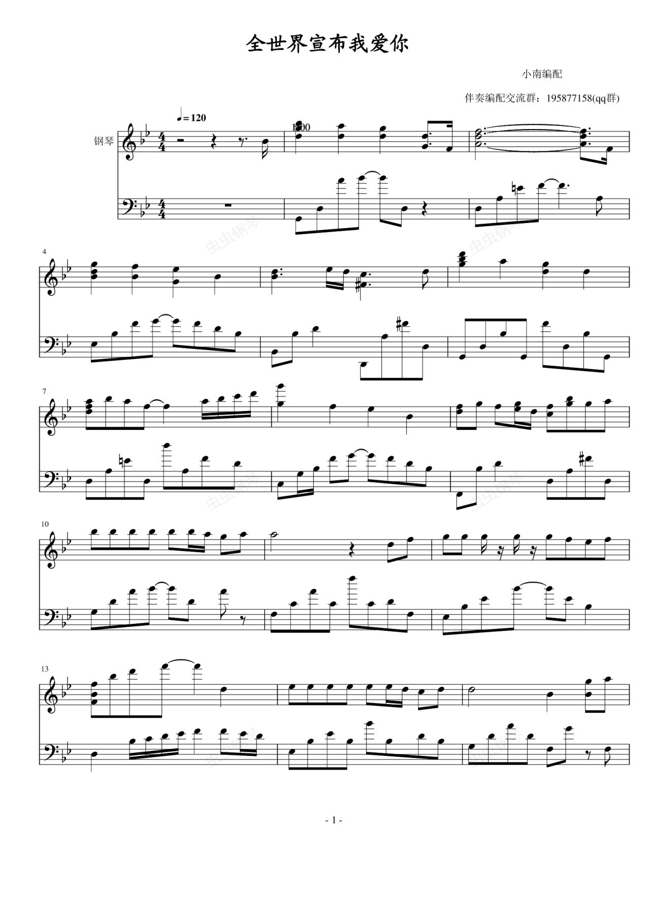 钢琴谱:全世界宣布我爱你