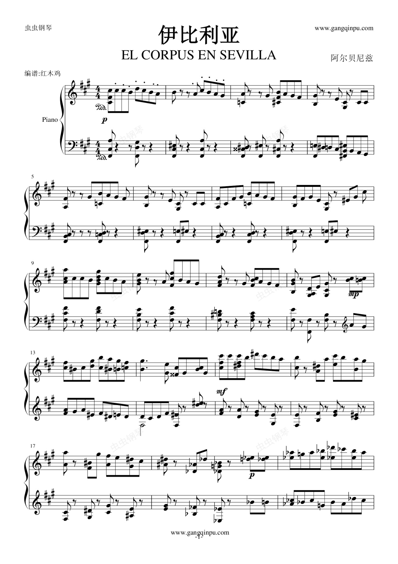 钢琴谱:伊比利亚 塞维利亚的圣体祭