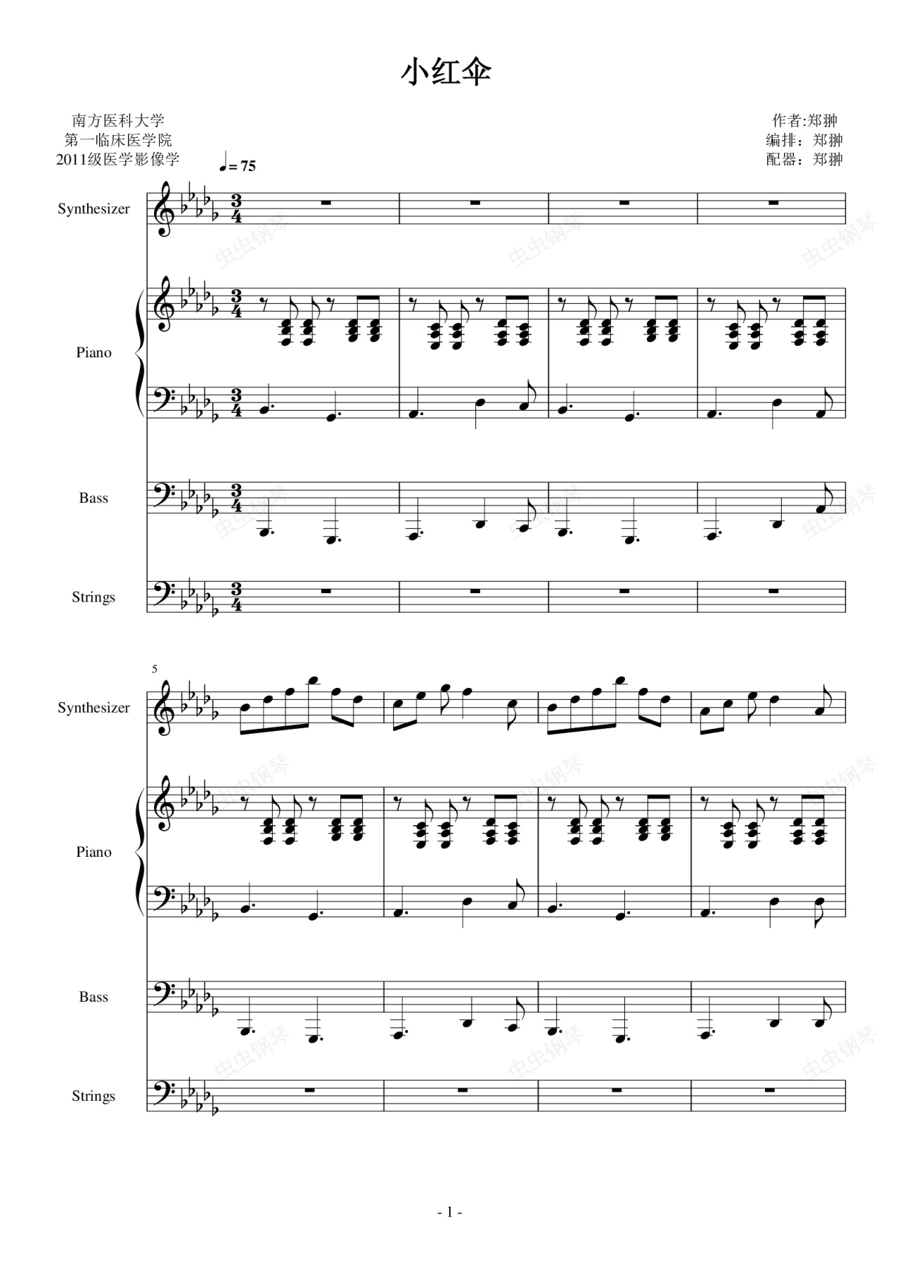 钢琴谱:小红伞