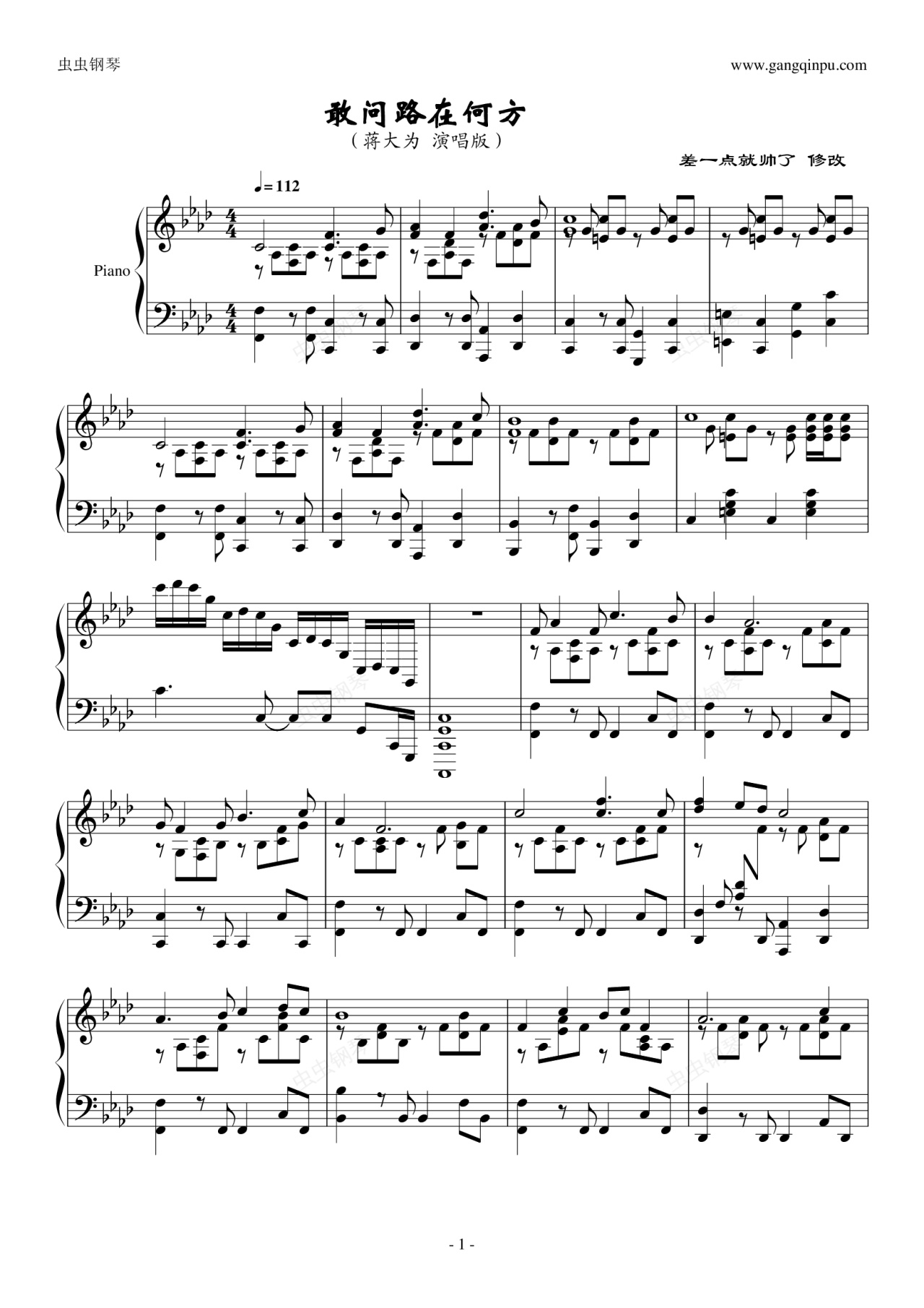 钢琴谱:敢问路在何方