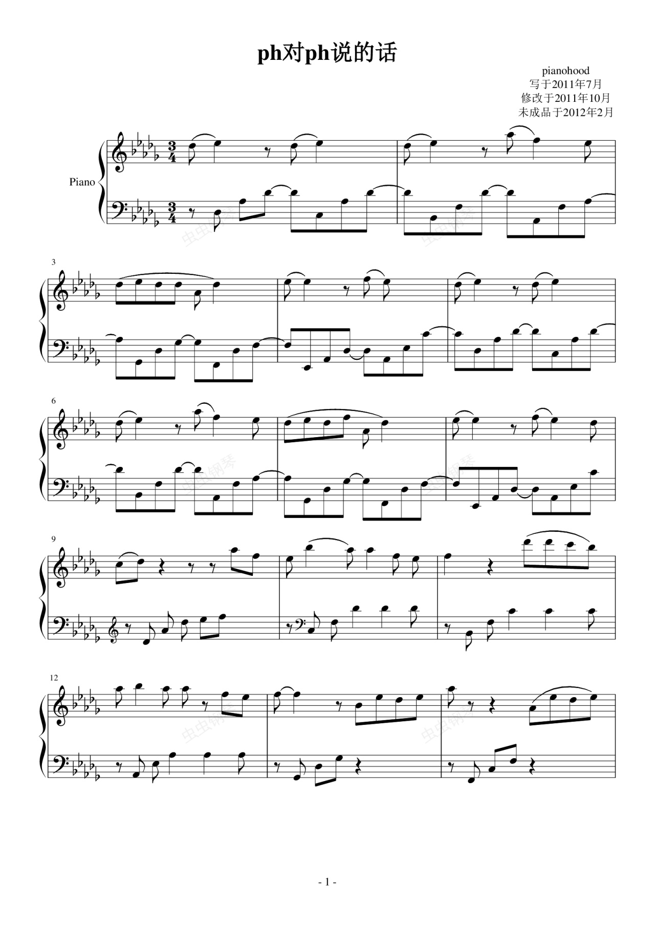 钢琴谱:ph对ph说的话 (pour ph)