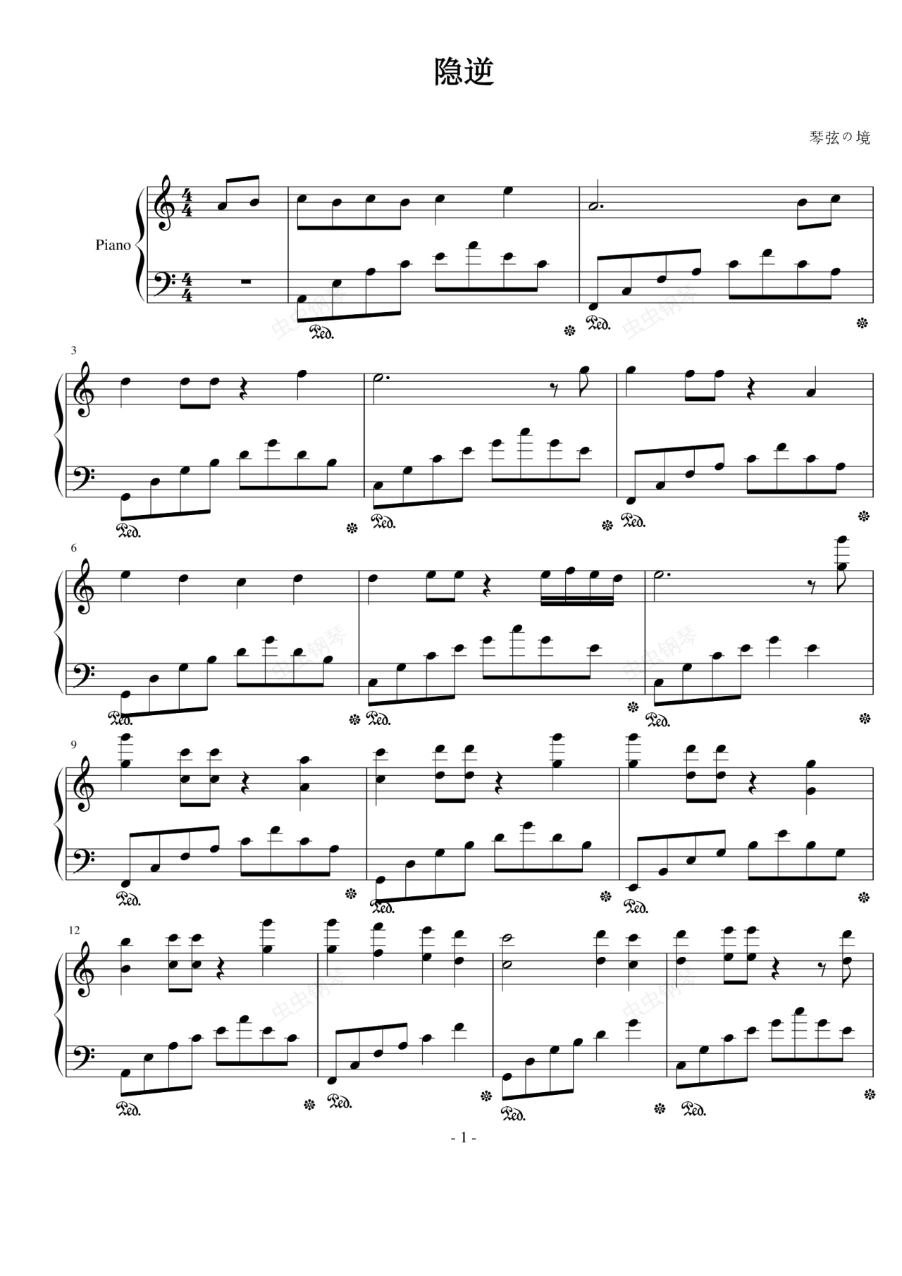 钢琴谱:隐逆