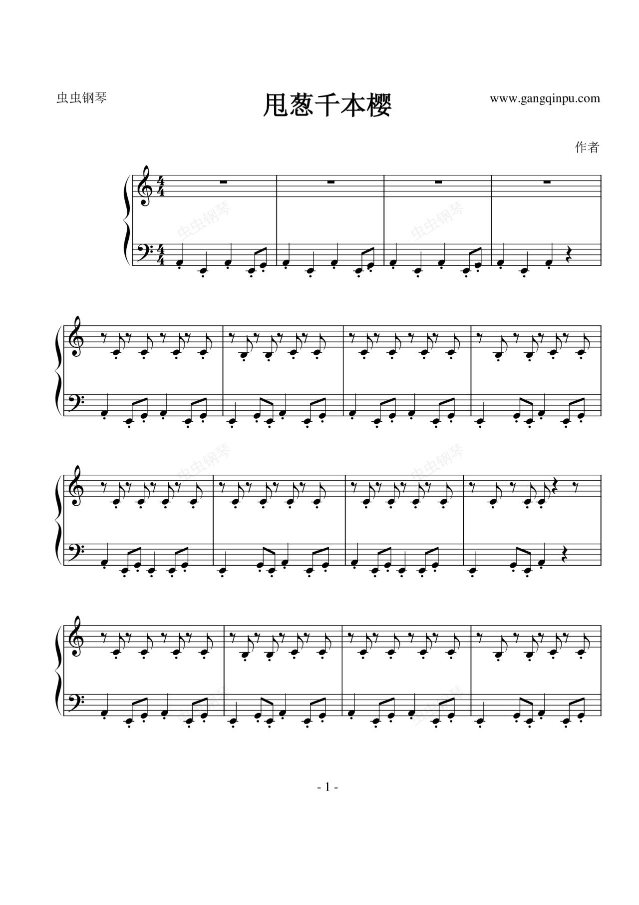 钢琴谱:甩葱千本樱