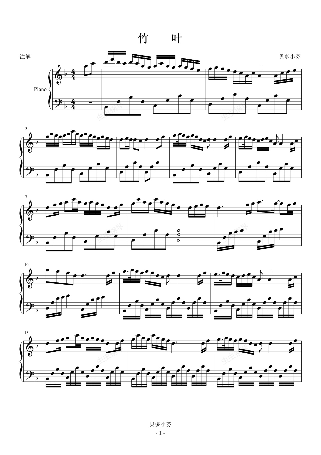 钢琴谱:竹叶