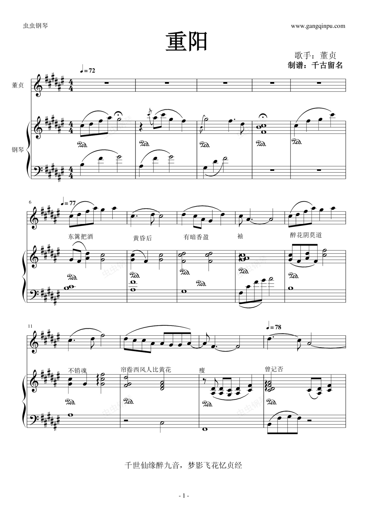 从董贞的歌《重阳》中扒的钢琴谱,人声用小提琴代替,用了三天,希望各位榛子喜欢! from 千古留名(有事联系百度ID千古留名)