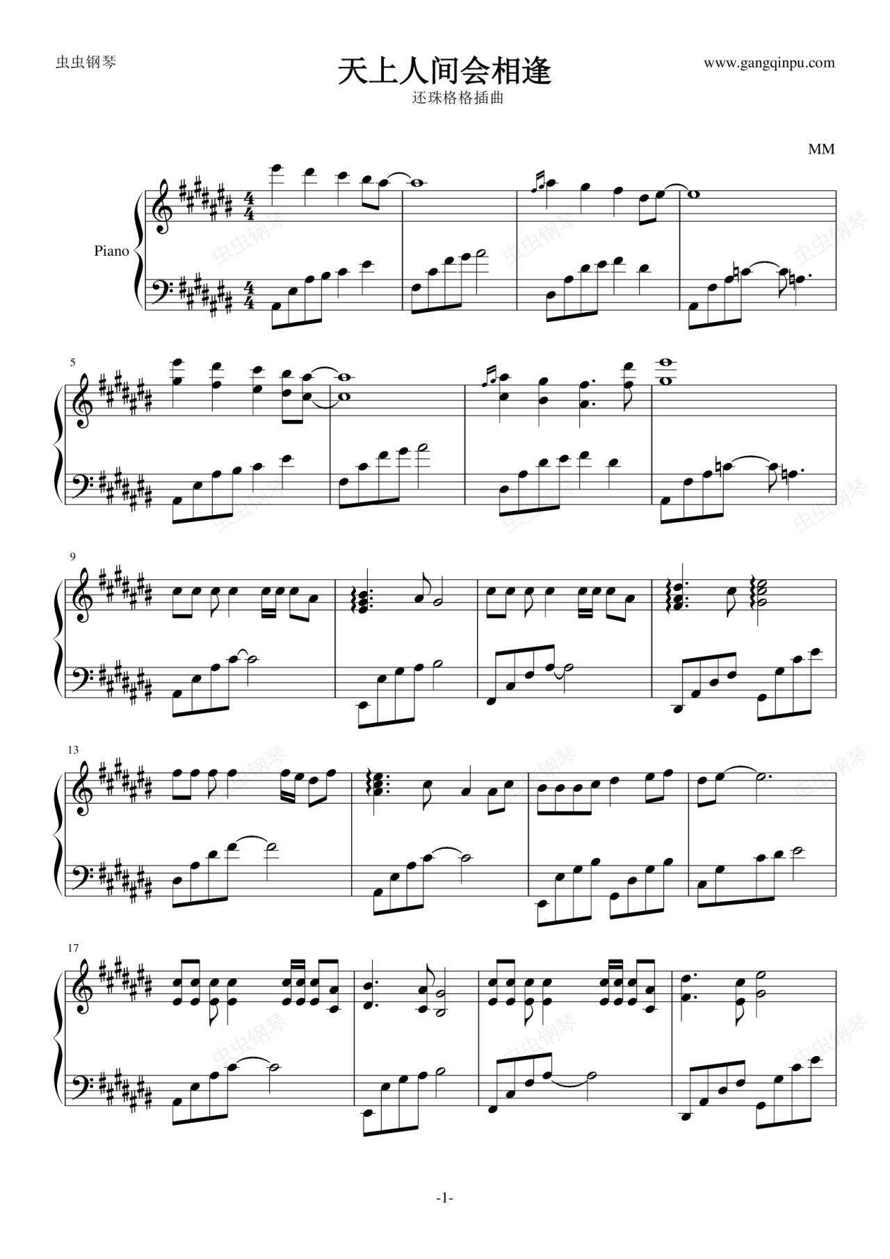 钢琴谱:天上人间会相逢-还珠格格插曲