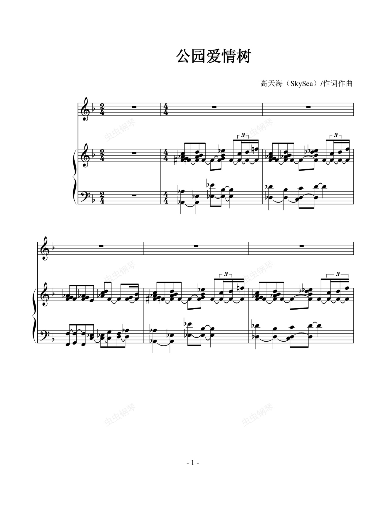 钢琴谱:公园爱情树