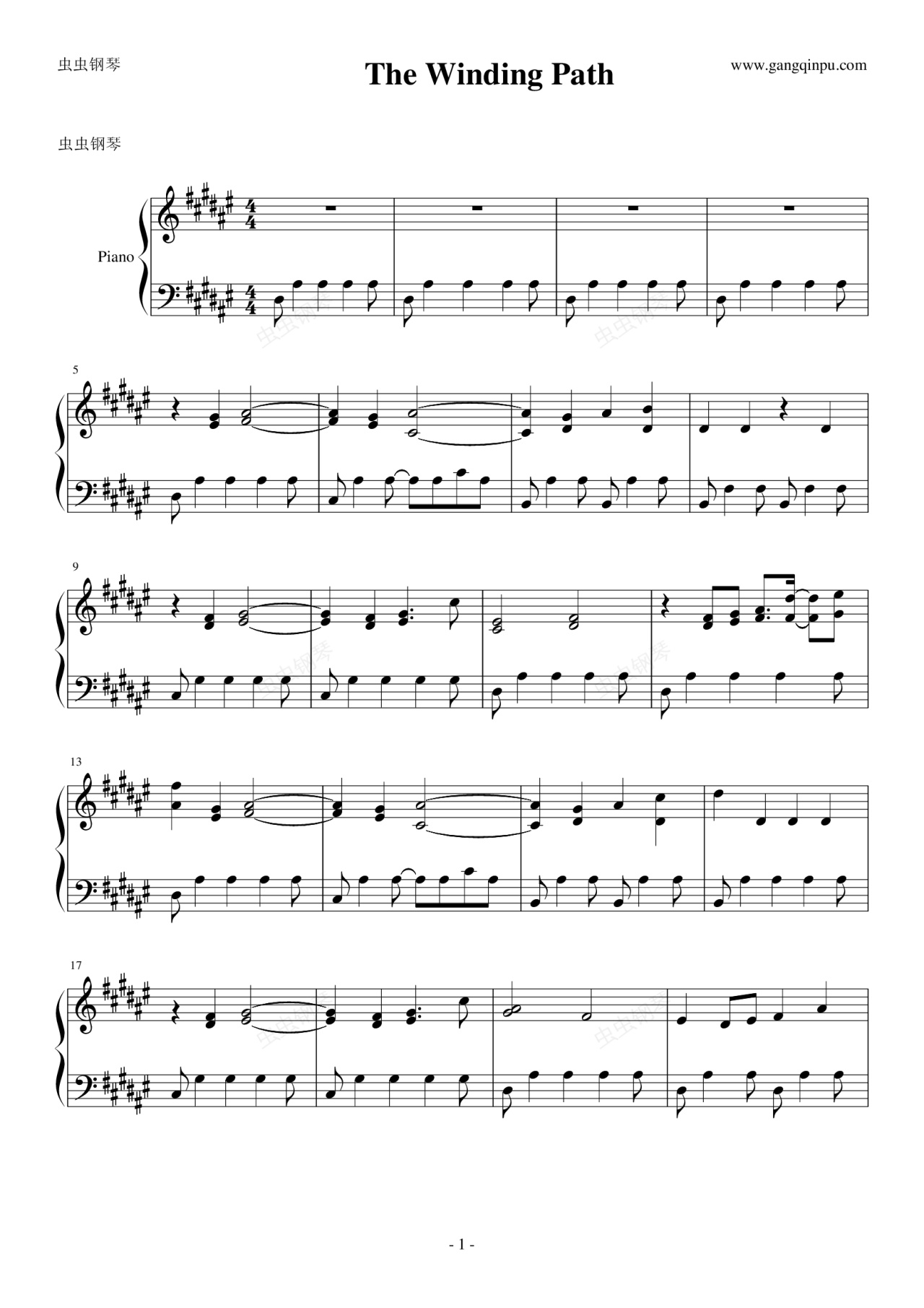 钢琴谱:The Winding Path