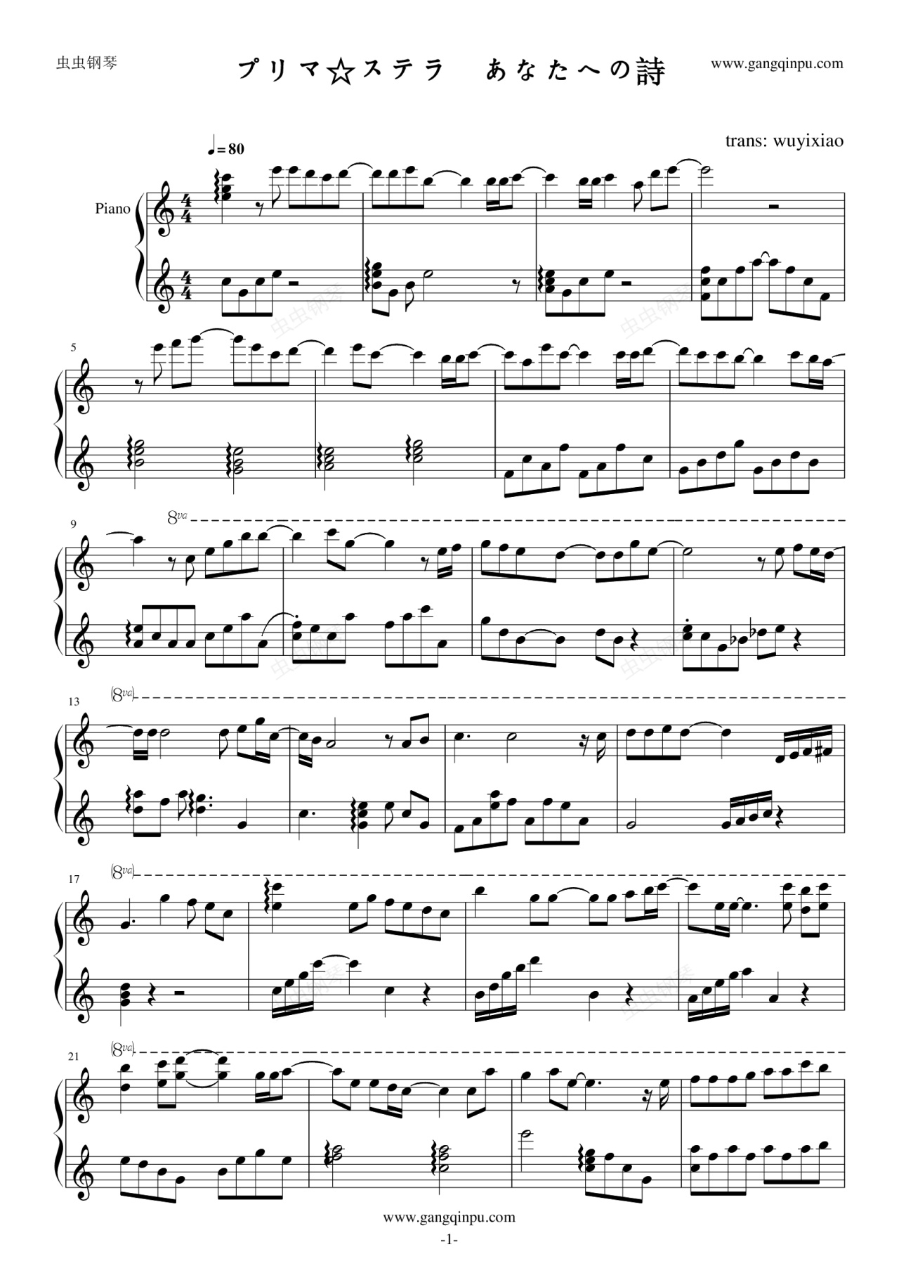钢琴谱:プリマ☆ステラ あなたへの詩