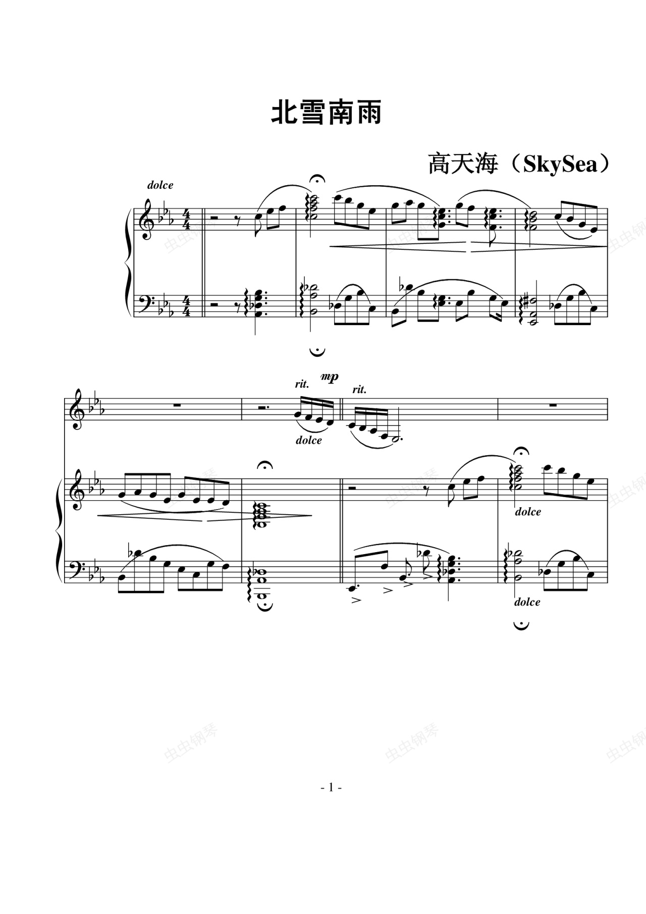 钢琴谱:北雪南雨(发掘唐宋歌曲)