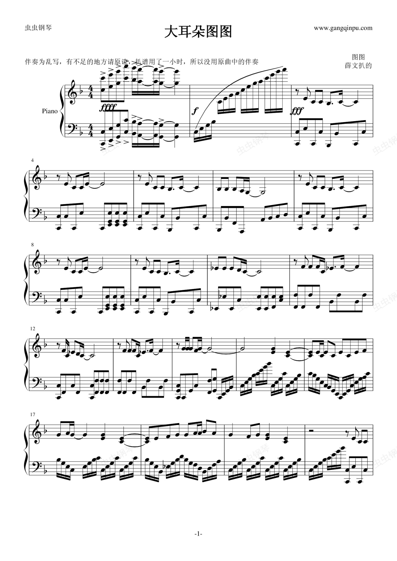 钢琴谱:大耳朵图图