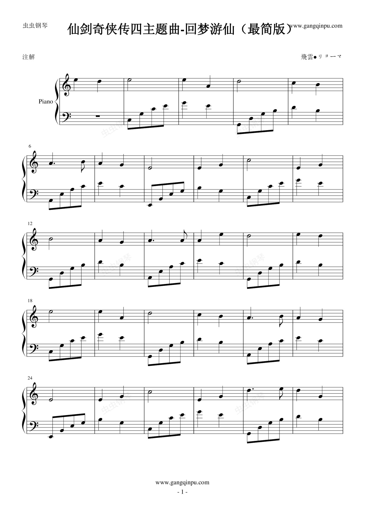 钢琴谱:仙剑奇侠传四主题曲-梦回游仙(最简版)