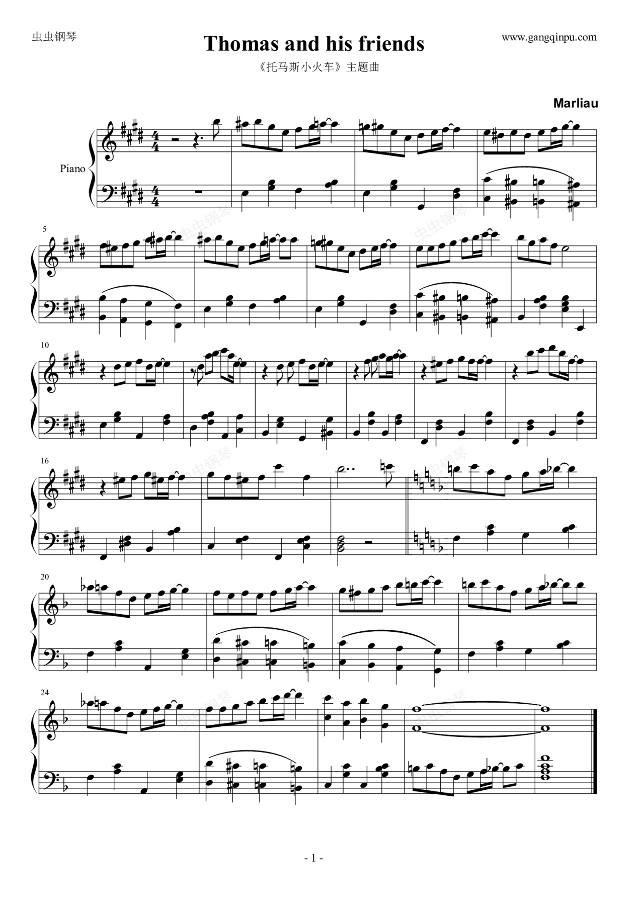 钢琴谱:【托马斯小火车】Thomas&hisfriends
