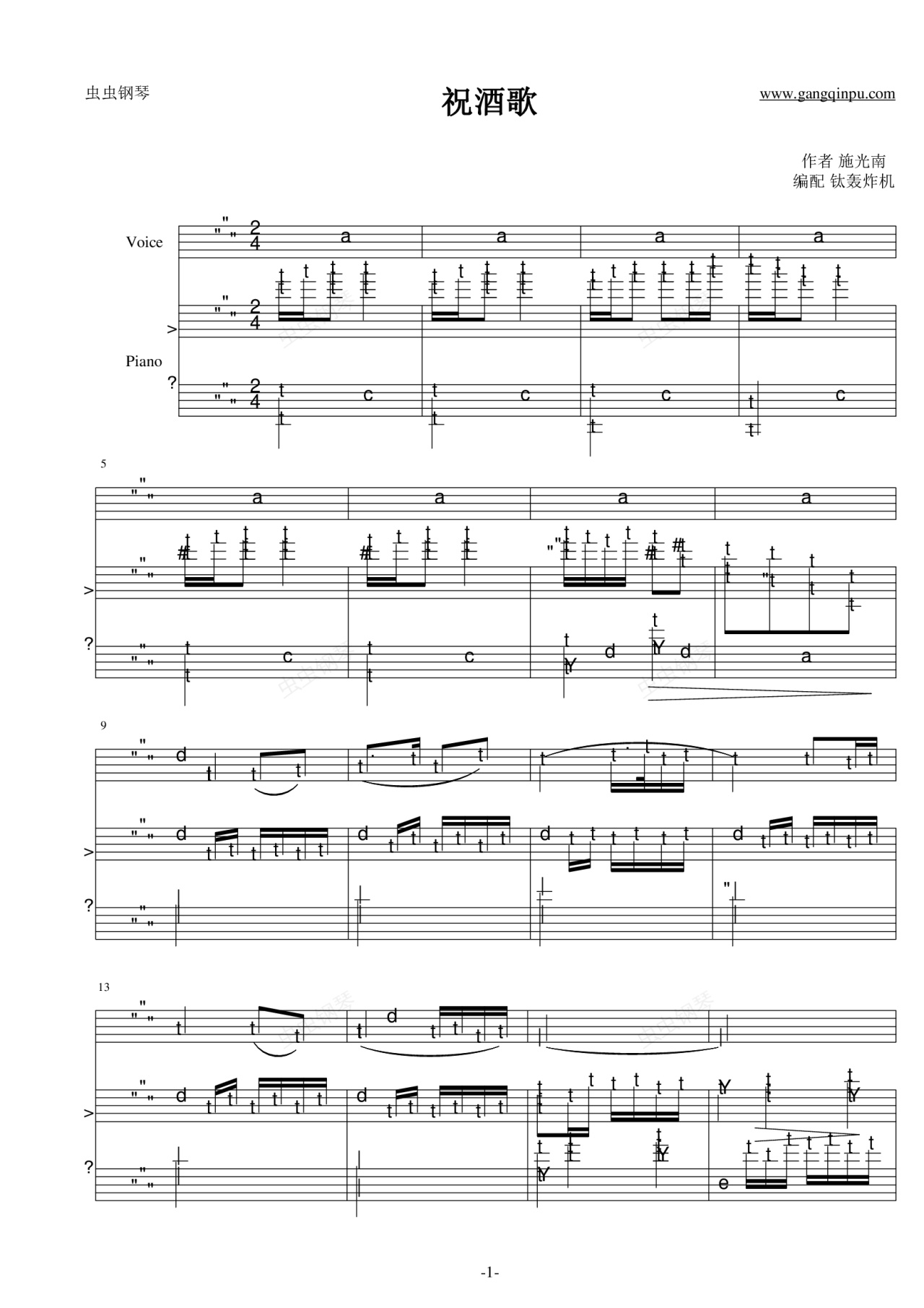 民音乐家施光南所作最著名的歌曲之一,由韩伟作词,创作于中国人民摆脱十年浩劫后的最初年代。 歌曲创作于上世纪70年代末,改革开放的门窗刚刚打开不久,一首《祝酒歌》唱响了一个历史新纪元的来临。 由我国著名男高音歌唱家李光羲演唱,顿时传遍了华夏大地,陶醉了亿万中国人民,成为一代颂歌。