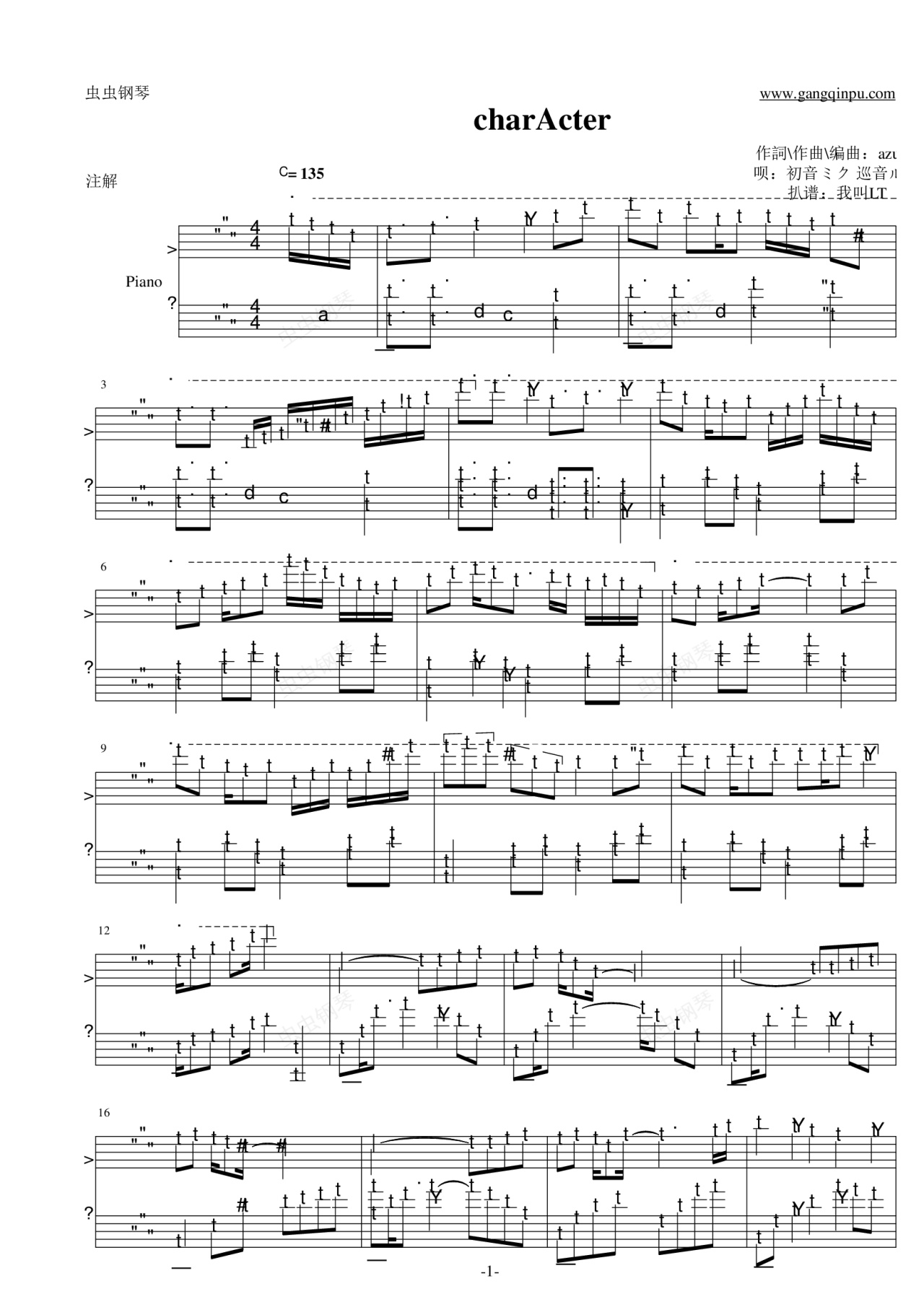 钢琴谱:charActer / 初音ミク、巡音ルカ