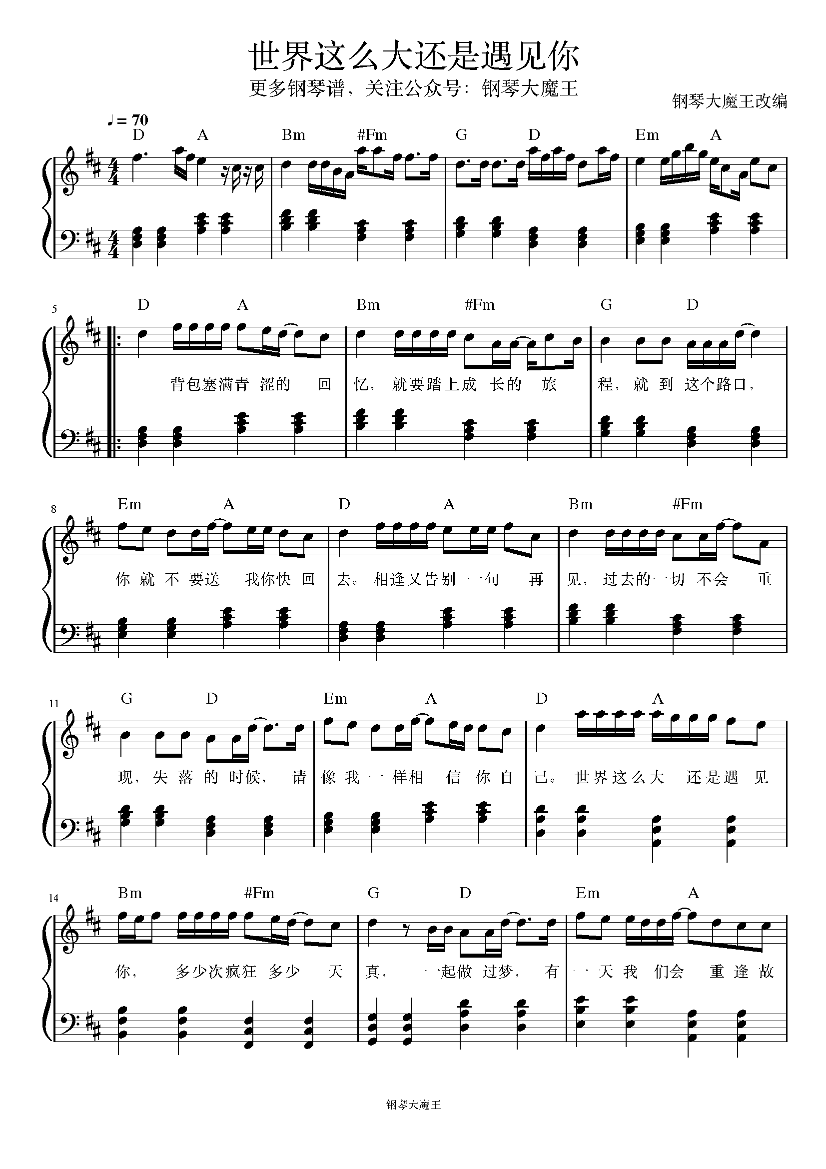 钢琴谱:世界这么大还是遇见你(带和弦)