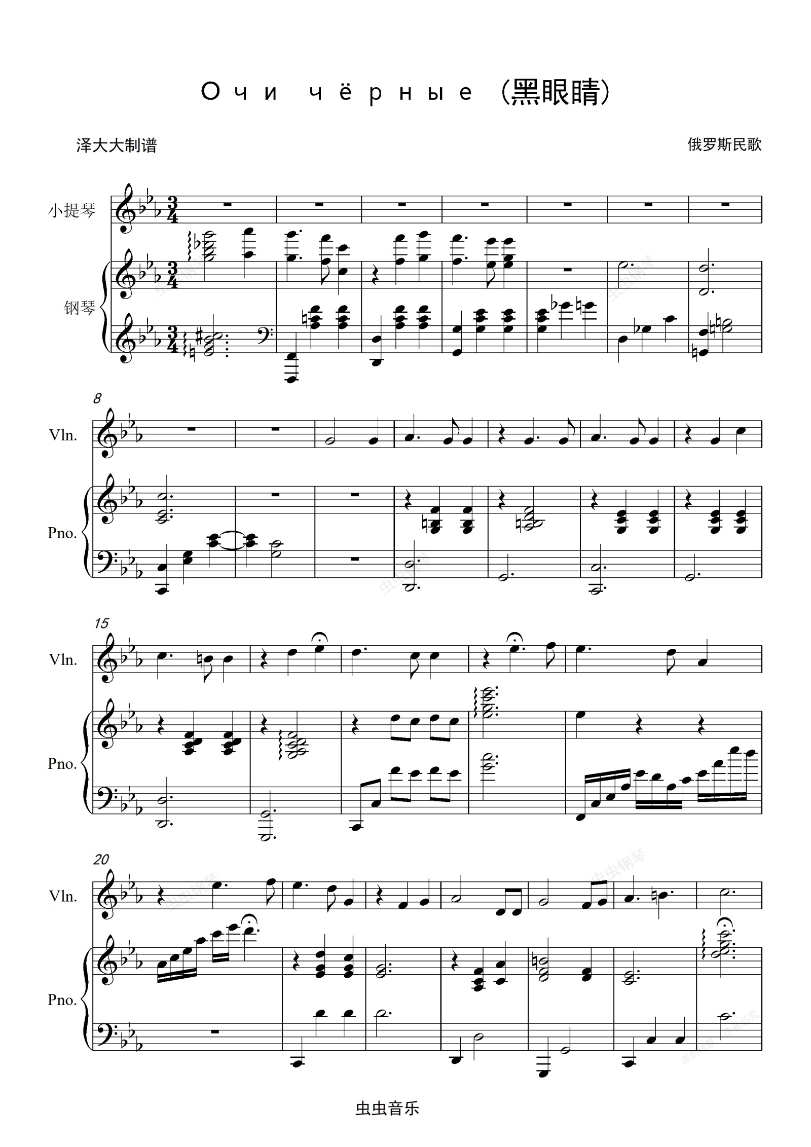 钢琴谱:Очи чёрные (黑眼睛)-俄罗斯民歌