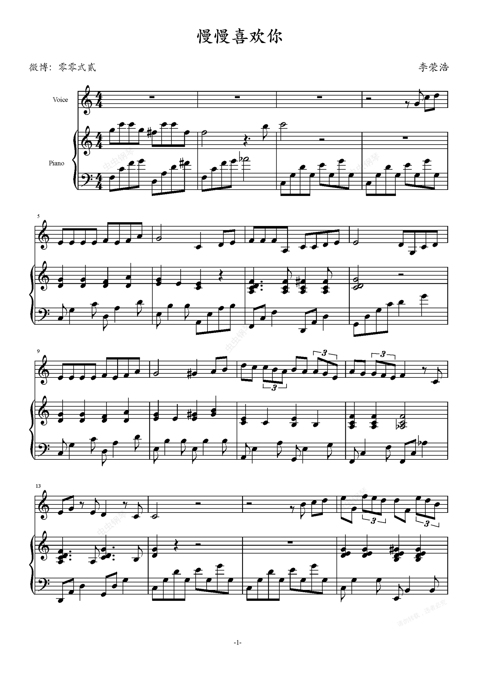 钢琴谱:低碳伴奏——《 慢慢喜欢你》男声版