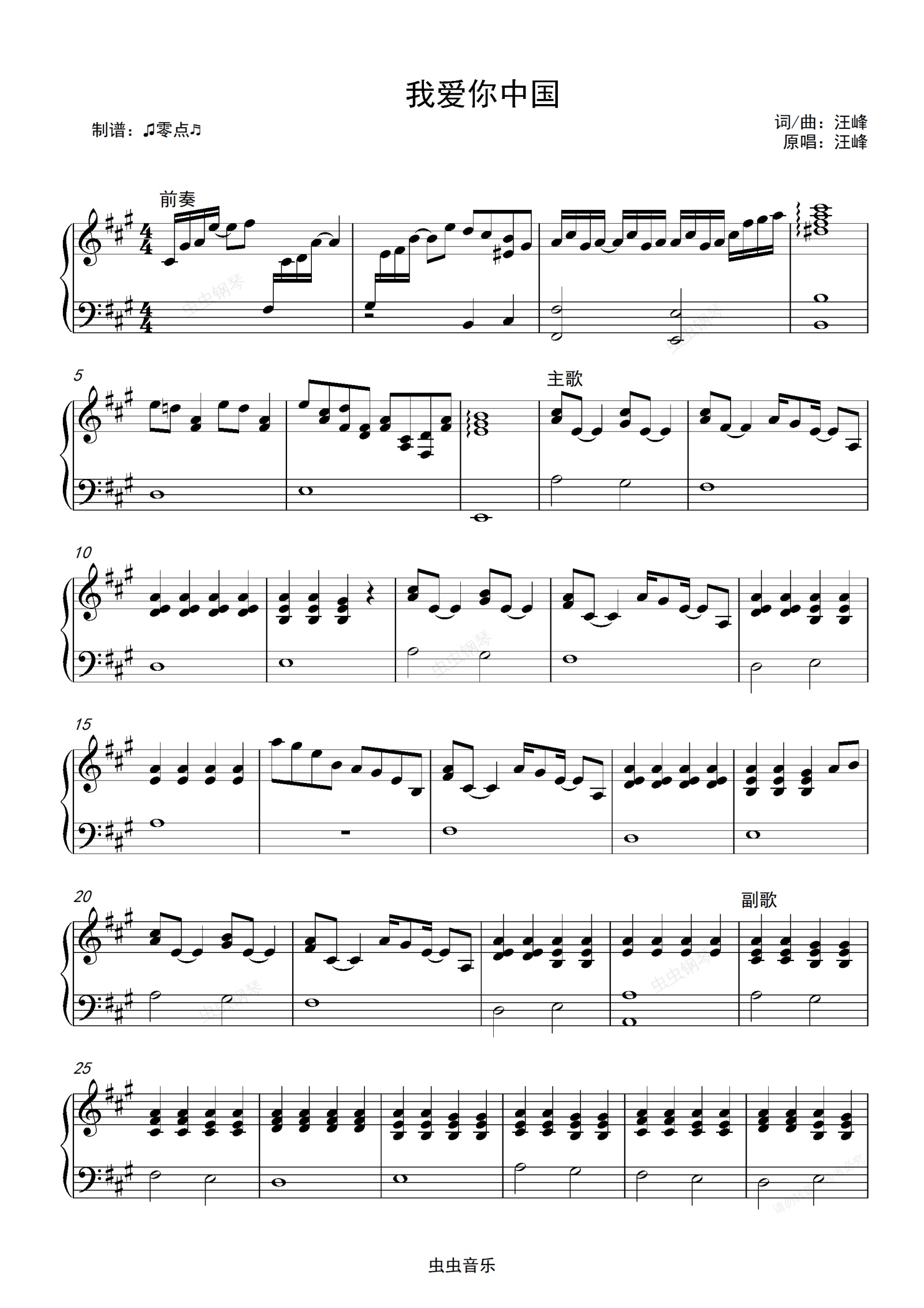 钢琴谱:《我爱你中国》汪峰独唱版 钢琴伴奏