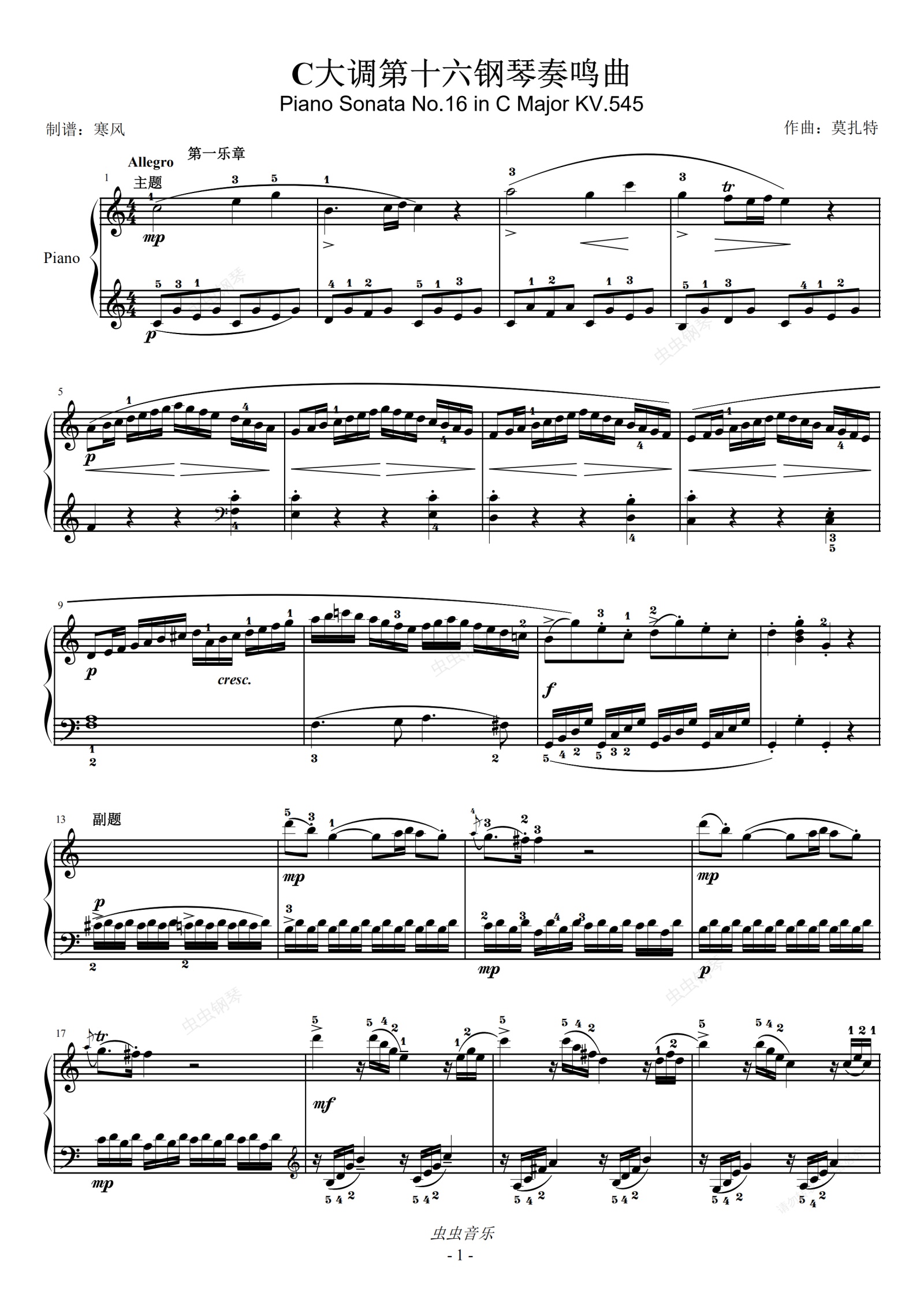 钢琴谱:莫扎特-C大调第十六钢琴奏鸣曲K.545