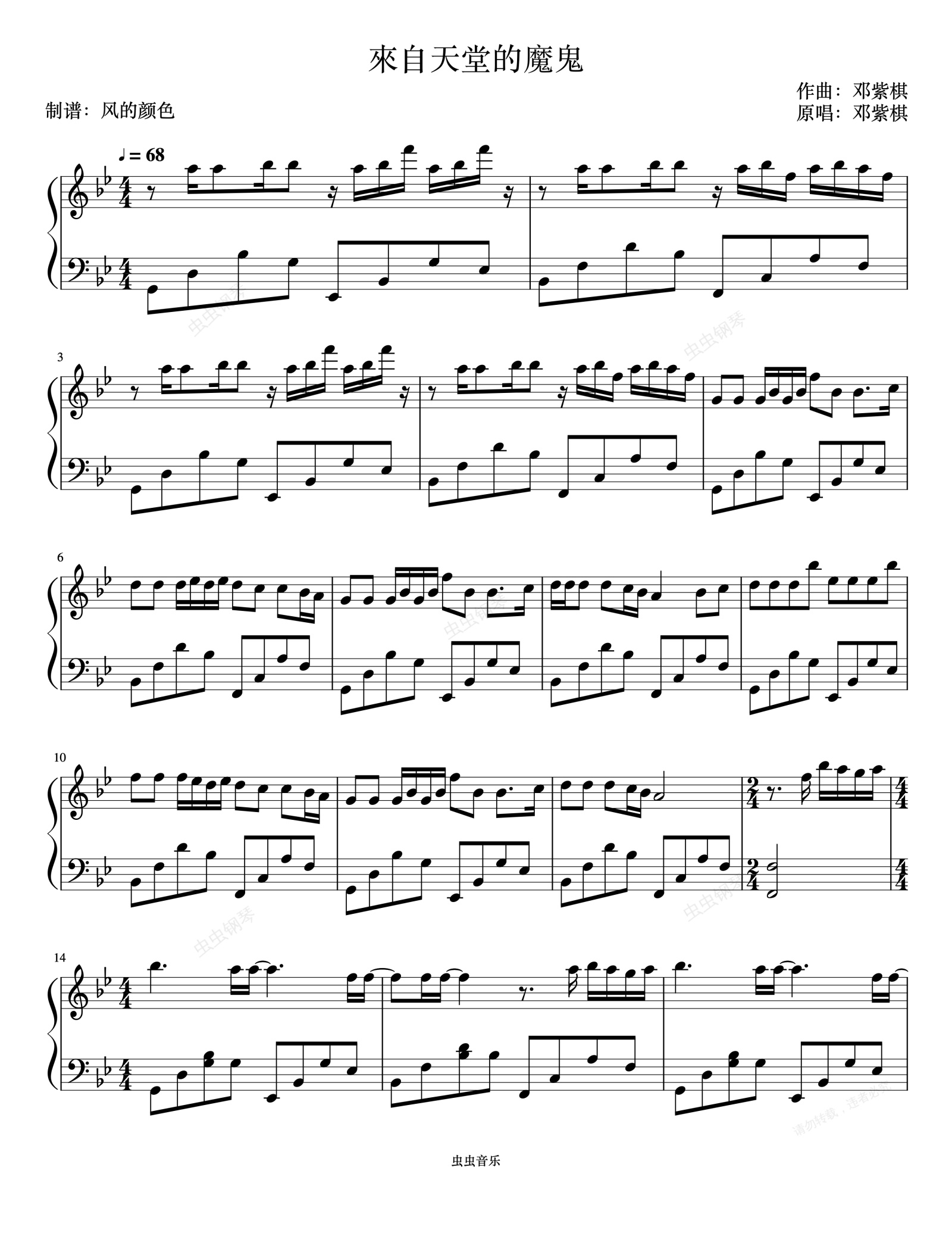 钢琴谱:《来自天堂的魔鬼》抒情版